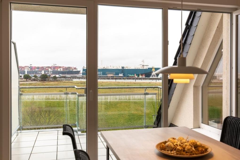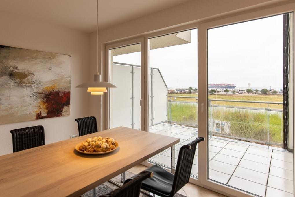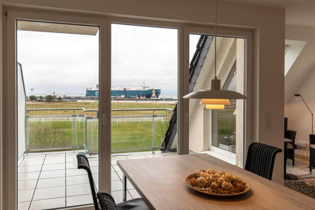 Traumhafte 3-Zimmer-Seesichtwohnung (ca.74m²) bis 3 Personen in der 4.Etage mit Personenaufzug erreichbar. Von hier blicken Sie über den Yachthafen und den Weltschifffahrtsweg #1, 1 Schlafzimmer mit Doppelbett u. Rollläden, 1 Schlafzimmer mit Einzelbett, beide Schlafzimmer mit Holzparkettboden, Du/Wc mit Föhn, Gäste-Wc, Wohnzimmer (gefliest), Küchenzeile mit Geschirrspüler, Backofen und Kühlschrank (ohne Gefrierfach), Senseo-Kaffeemaschine, Sat-TV, kostenloses W-Lan Internet, zwei Balkone (nord und süd), Parkplatz #7, keine Haustiere erlaubt und natürlich Nichtraucher.