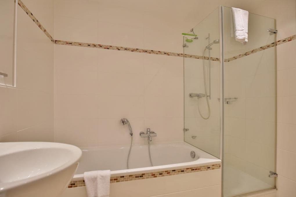 Badeværelse med bruser og badekar