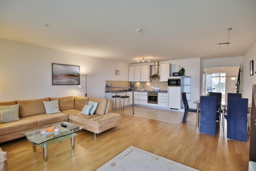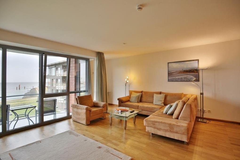 Großzügige 102m² Wohnung in der 1.Etage. Hier haben Sie die Traumseesicht auf den Weltschifffahrtsweg und die Hafenanlagen. 1 Schlafzimmer mit Doppelbett und TV, 1 Schlafzimmer mit Schlafsofa, 1 Bad/Du/Wc und 1 Gäste-Wc, sehr großes Wohnzimmer mit komplett ausgestatteter Küchenzeile, TV u. BlueRay DVD, Radio mit Dockingstation, 2 große, windgeschützte Balkone (nord+süd). Alle Räume sind mit Parkett gestaltet und verfügen über Rollläden. Zur Wohnung gehört ein reservierter Pkw-Stellplatz in der Tiefgarage. Keine Haustiere. Nichtraucher.