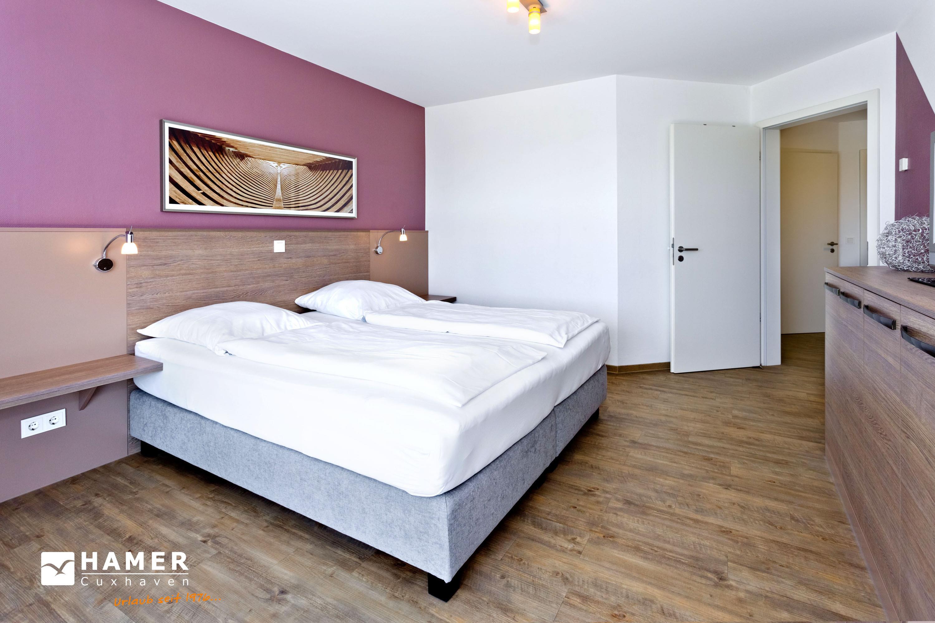 Sehr geschmackvolle Wohnung in der 2.Etage auf 102 m². Hier haben Sie die Traumseesicht auf den Weltschifffahrtsweg und die Hafenanlagen. 1 Schlafzimmer mit Doppelbett (Boxspringbett) und TV, 1 Schlafzimmer mit 2 Einzelbetten, Schlafzimmer mit Rollläden, 1 Du/WC und 1 Gäste-WC, Föhn, großes Wohnzimmer mit komplett ausgestatteter Küchenzeile, TV, CD, 2 große Balkone (nord+süd). Zur Wohnung gehört ein reservierter Pkw-Stellplatz am Haus. Keine Haustiere. Nichtraucher. Fahrräder können auch bequem und sicher im ebenerdigen Fahrradraum des Nachbargebäudes abgestellt werden (separater Schlüssel).