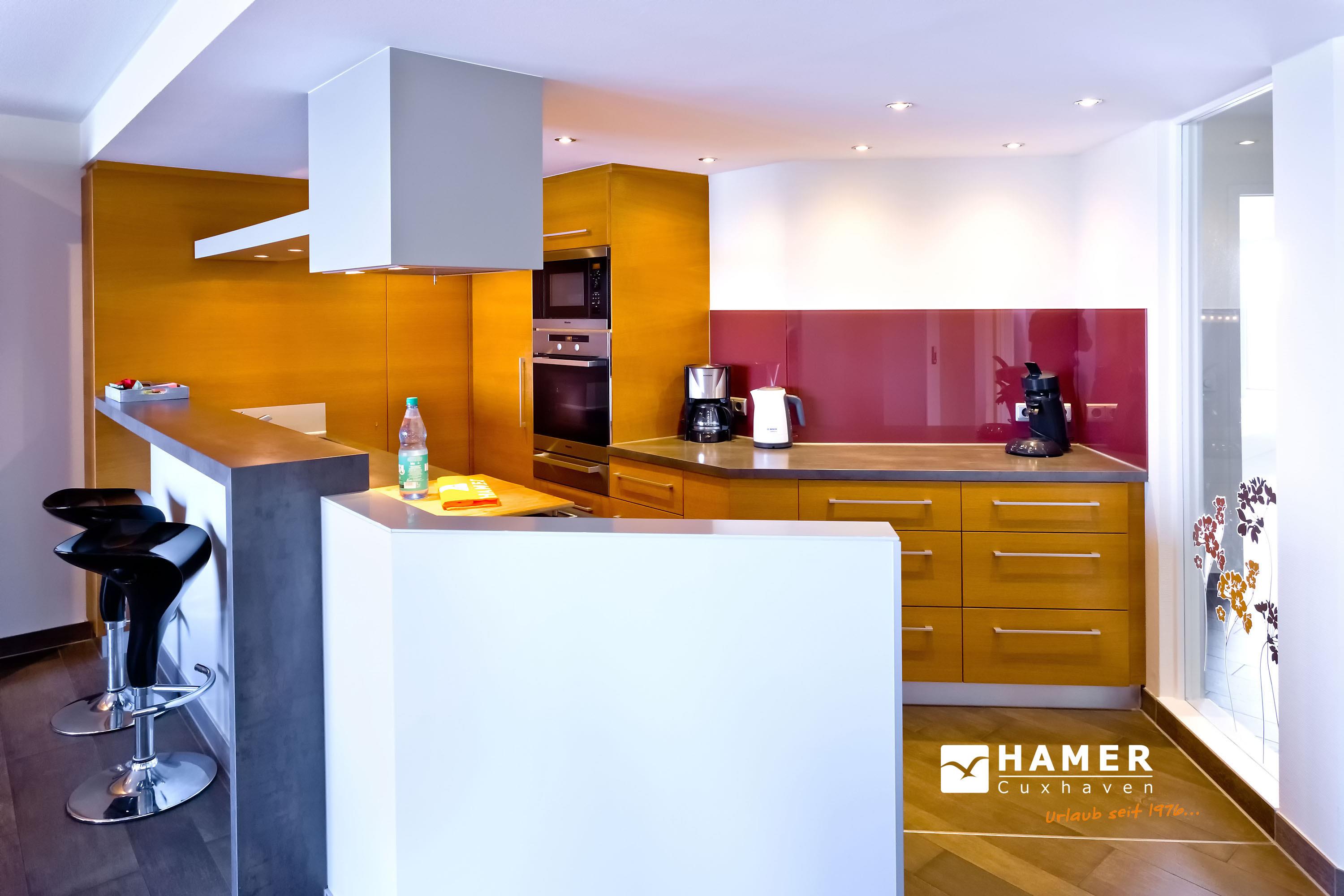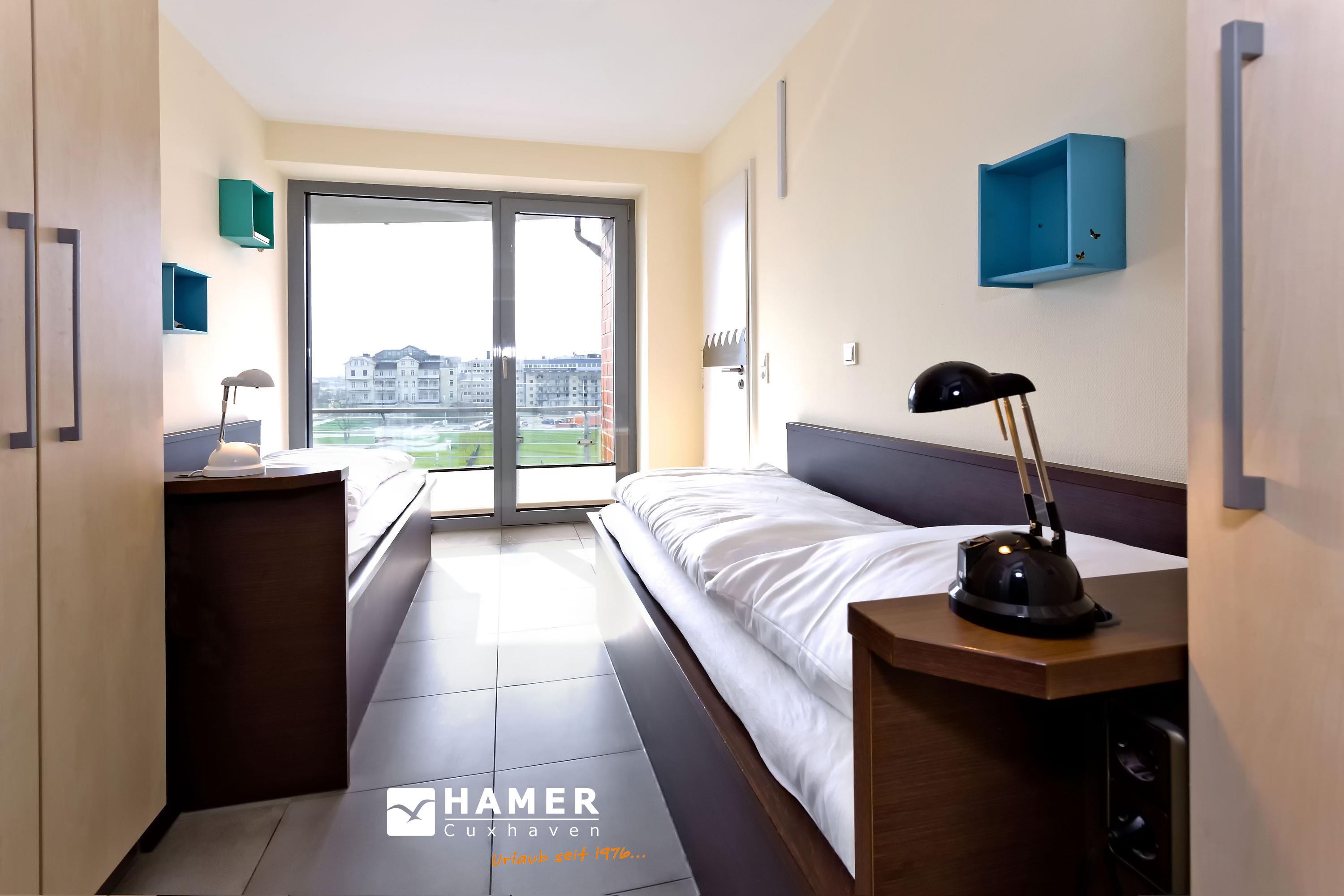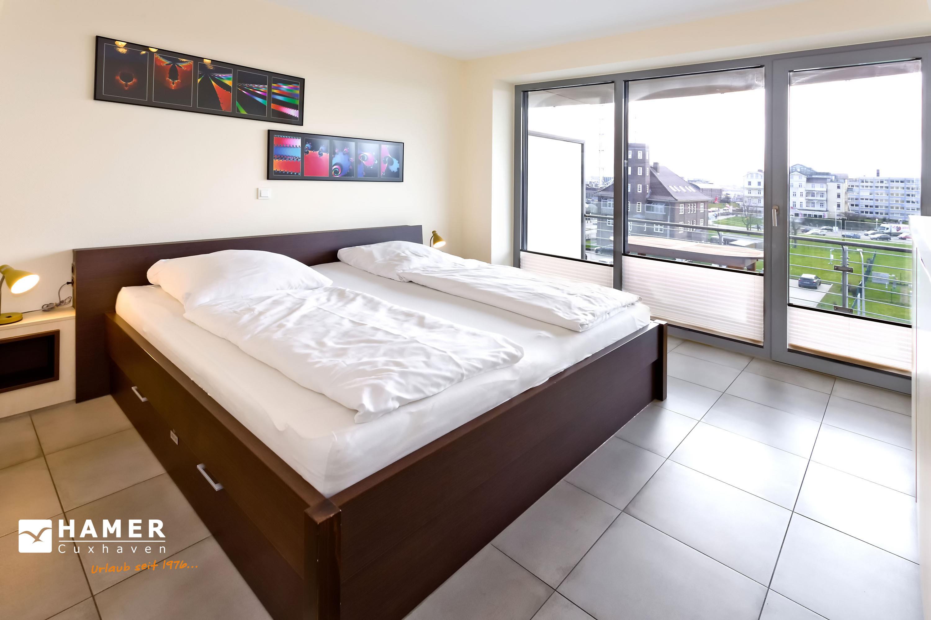Sehr geschmackvolle, tolle Wohnung in der 3.Etage über 102m². Hier haben Sie den Traumseeblick auf die vorbeiziehenden Schiffe. 1 Schlafzimmer mit Doppelbett TV, 1 Schlafzimmer mit Einzelbetten, beide Schlafzimmer mit Rollladen, Du/Wc, Bad//Wc, großes Wohnzimmer TV/DVD, offene u. vollständige Miele-Küche, 1 Balkon (nord) mit Blick auf die Elbe, 1 Balkon (süd) mit Blick auf den Hafen, alle Räume sind hochwertig gefliest. Zur Wohnung gehört je ein reservierter Stellplatz in der Tiefgarage und auf dem Außengelände. Nichtraucher, keine Haustiere.
