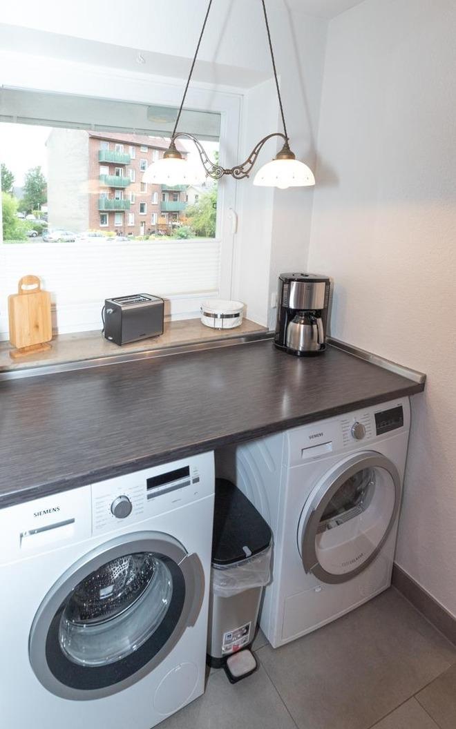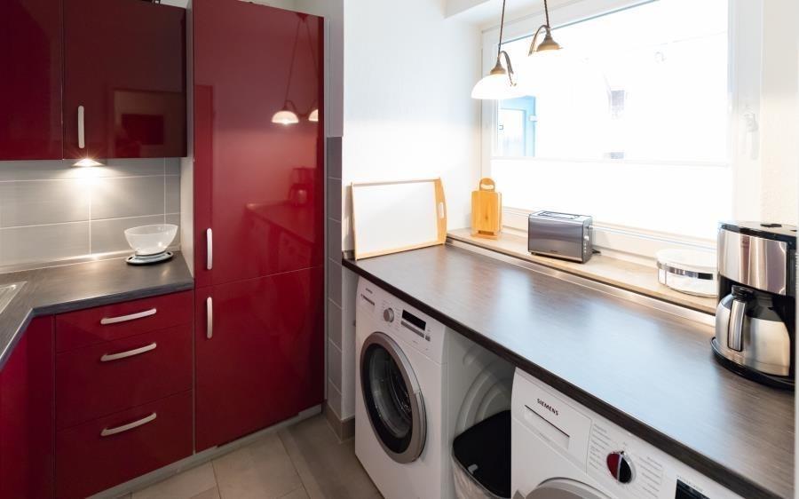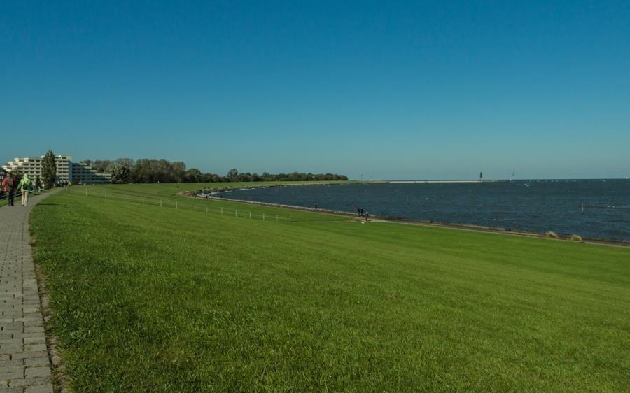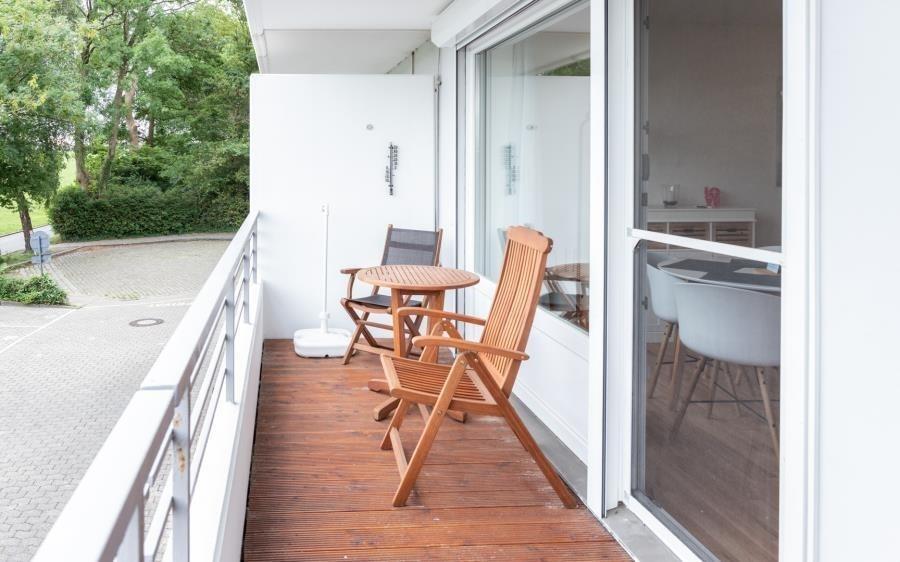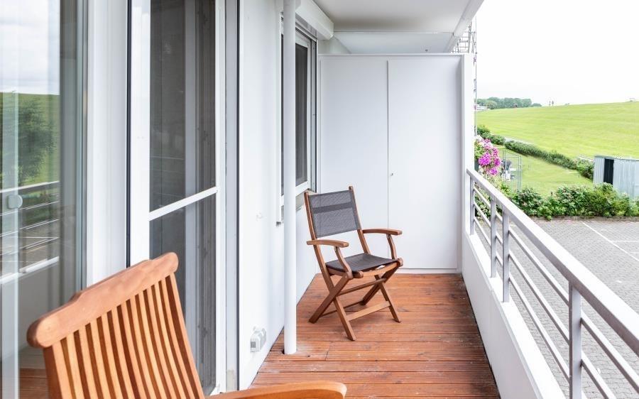Direkt im Eingangsbereich der Wohnung befindet sich die separate Küche.[nbsp] Dieses ist mit einer Waschmaschine, einem Trockner und Geschirrspüler, Kühlschrank mit Gefrierschrank sehr gut eingerichtet. Der Essbereich im Wohnzimmer integriert, bietet genügend Platz für ein ausgiebiges Urlaubsessen, welches auch auf dem schönen Balkon serviert werden kann. Auch wenn Sie hier keine Seesicht genießen, die direkte Deichnähe lässt Sie entspannen. Wenige Schritte und Sie sind auf der der Deichkrone und haben das Wasser zum greifen nahe. Das Bojenbad in der Grimmershörnbucht ist nur wenige Meter entfernt.