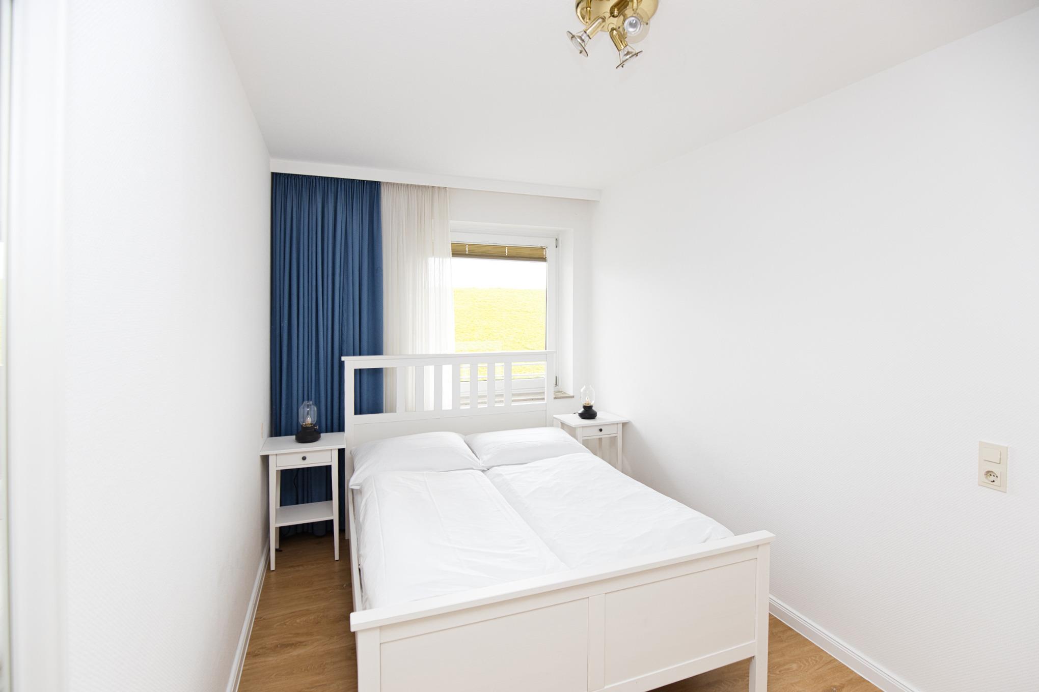 Die Ferienwohnung empfangt Sie in der Diele, großzügig mit Garderobe und dem Zugang zur Küche, zum Duschbad und zum Wohnbereich. Eine Waschmaschine, Kühlschrank mit Gefrierfach befinden sich direkt in der mit vielen Ablagen gut ausgestatteten Küche. Der Essbereich, der sich im Wohnzimmer befindet, bietet auch für ein Frühstücksbrunch genügend Platz am Tisch und wenn es das Wetter zulässt wird am Abend der Wein auf dem Balkon ausgeschenkt. Auch wenn Sie hier keine Seesicht genießen, die direkte Deichnähe lässt Sie entspannen. Wenige Schritte und Sie sind auf der der Deichkrone und haben das Wasser zum greifen nahe. Das Bojenbad in der Grimmershörnbucht ist nur wenige Meter entfernt.