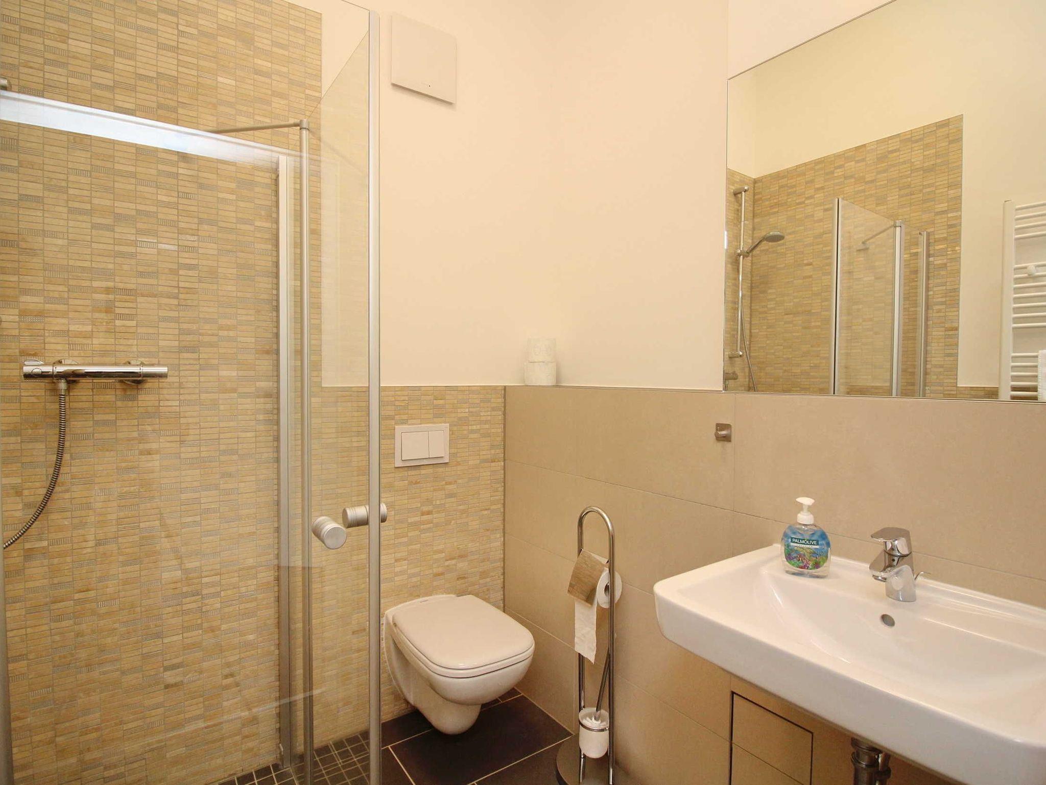 Alle Wohnungen verfügen über moderne Bäder und bodentiefe Duschen. Im Preis ist die Erstausstattung mit Bettwäsche, Handtüchern sowie Geschirrtuch und Spülmittel enthalten.