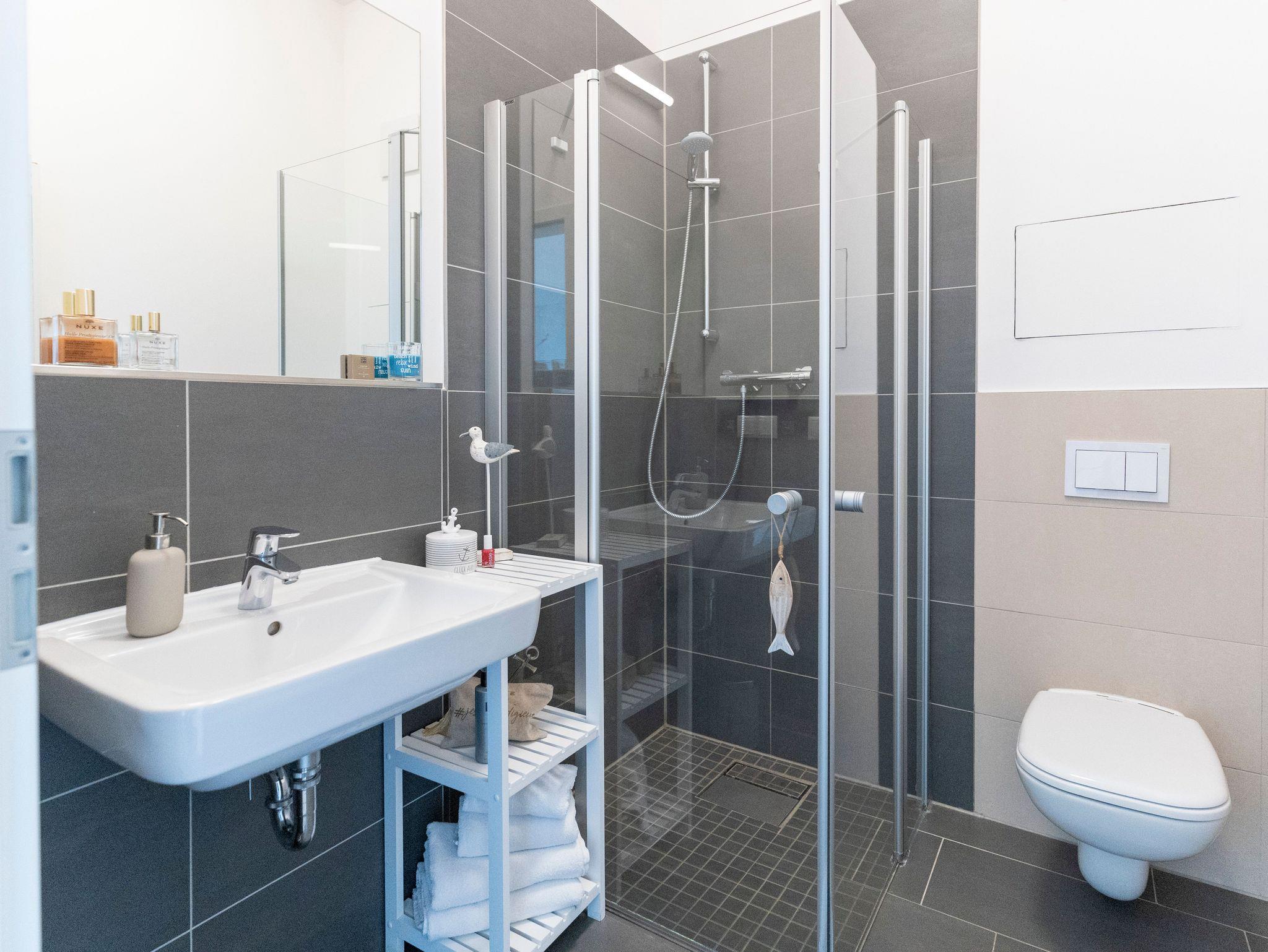 Alle Wohnungen verfügen über moderne Bäder und bodentiefe Duschen. Im Preis ist die Erstausstattung mit Bettwäsche, Handtüchern sowie Geschirrtuch und Spülmittel enthalten.