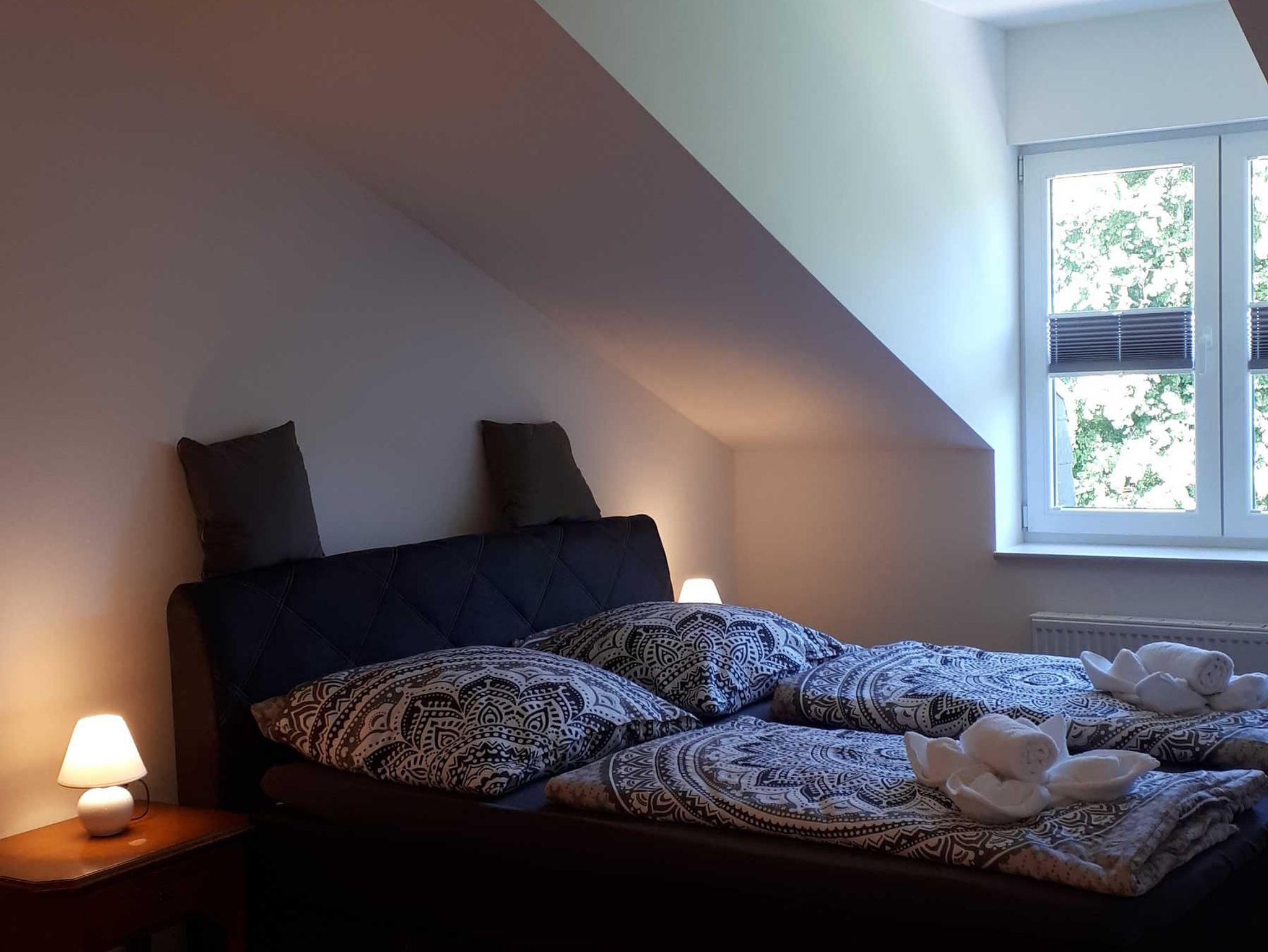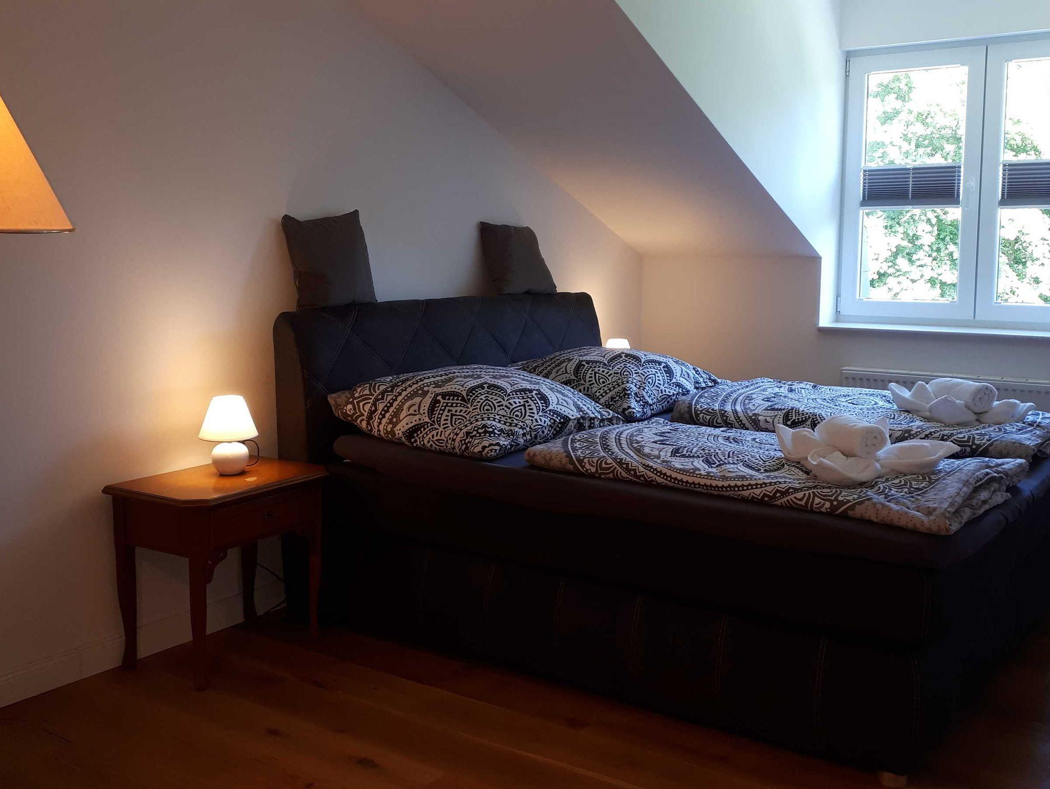 Die Schloss Superior Suite (60 m²) ist ein großzügig geschnittenes, modern eingerichtetes Apartment im Dachgeschoss mit separatem Schlafzimmer und großem Doppelbett (1,80 x 2,00).Das Wohnzimmer ist mit einer großen Schlafcouch (1,60 Meter breit), sowie einer hochwertigen, modernen Küchenzeile inklusive Geschirrspülmaschine, Nespresso Kaffeemaschine und weiteren Küchenutensilien ausgestattet. Die Wohnung verfügt über 2 neue, moderne Bäder mit bodentiefen Duschen.