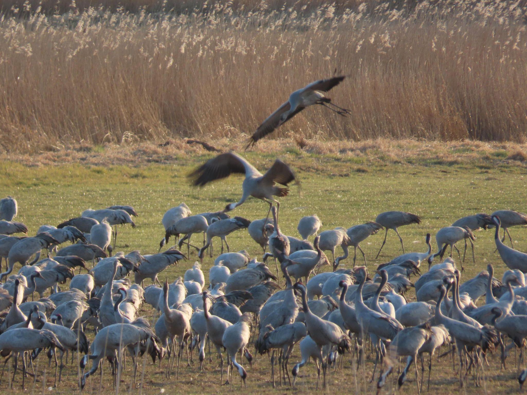 Im Frühjahr und Herbst ziehen tausende Kraniche direkt übers Gutshaus. Ein einmaliges Schauspiel.