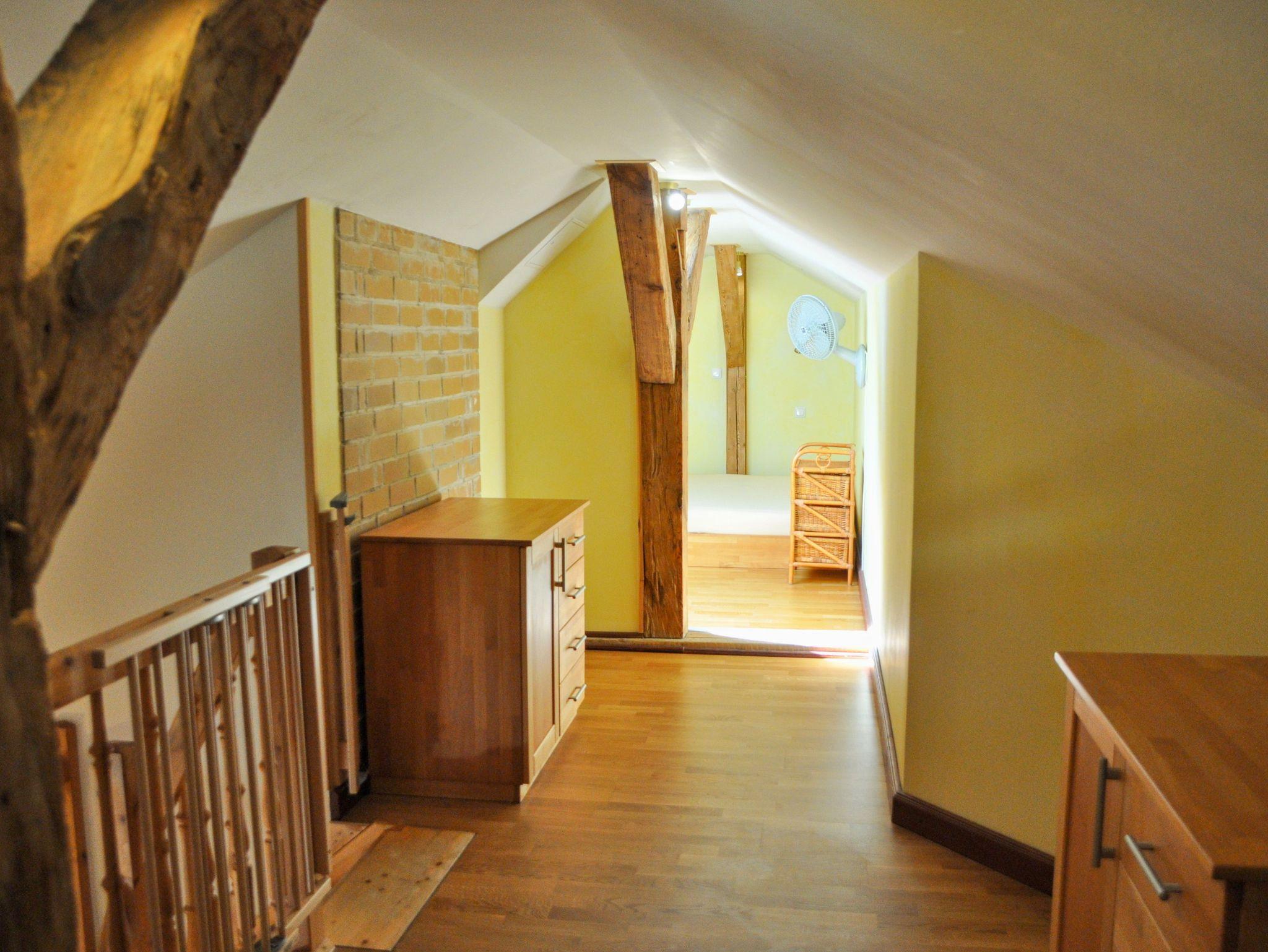 Sehr großzügige 3-Zimmer-Wohnung im Dachgeschoß (Dachschrägen). Wohnzimmer mit Sitzecke, Esstisch, Pantryküche und Schlafsofa. Schlafzimmer mit Doppelbett. Schlaf- und Wohnbereich für große Kinder auf der Galerie-Ebene, Treppe mit Treppengitter beidseitig gesichert. Geräumiges Bad mit Dusche. Gesamt-Wohnfläche: 79 m².