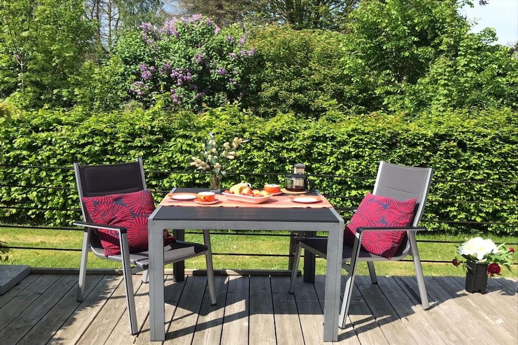 Unser Ferienbungalow "Sommerfrische" bietet Ihnen in schöner Natur, Ruhe und Erholung mit Boddenblick. Jetzt im Herbst können die Kraniche wunderbar beobachtet werden! Es handelt sich um einen ca. 50 qm großen freistehenden Bungalow, mit einer modernen Einrichtung. Von der Terrasse haben Sie einen schönen Blick auf den Bodden. Hier finden Sie mit maximal zwei Personen (plus Kind) ausreichend Platz zur freien Entfaltung. Das Ferienhaus verfügt über ein Schlafzimmer mit Doppelbett (180 cm x 200 cm), Duschbad und Küche (komplett eingerichtet mit Spülmaschine). Von der Küche abgetrennt ist ein offener Essplatz und davon geht ein Wohnzimmer mit Zugang zur Terrasse ab. Das Schlafsofa ist zur Übernachtung von einem Kind geeignet. Die Espressomaschine macht leckeren Kaffee! Elektroheizkörper erwärmen das Haus bei jeder(!) Witterung. Mit unserem Stand-up-Paddleboard können Sie den Bodden erkunden. Wir freuen uns auf ihren Besuch!