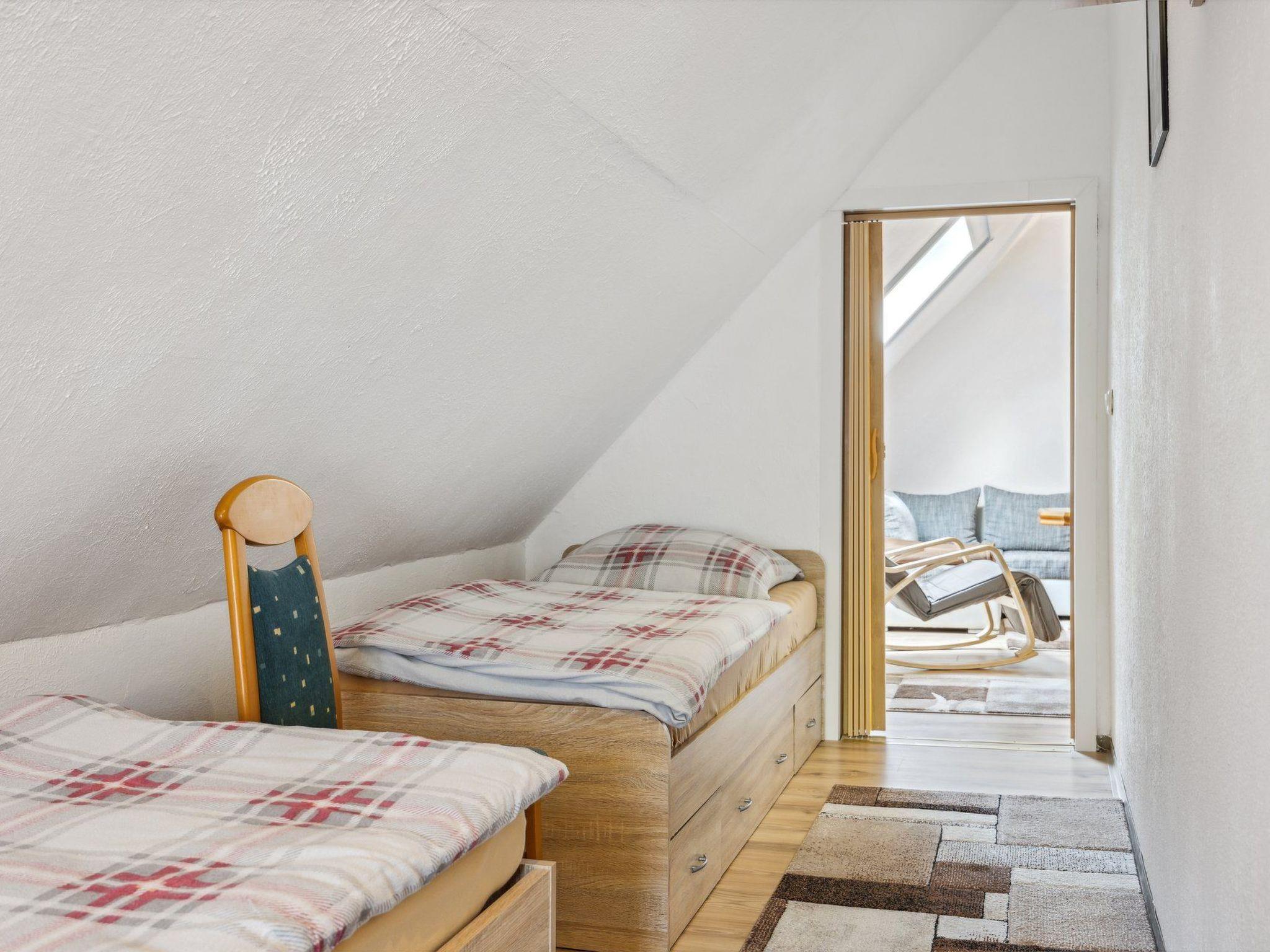The interior leaves nothing to be desired: An inviting living room with upholstered furniture, sleeping function, flat-screen TV, radio and WiFi for relaxing evenings, a fully equipped kitchen with electric hob, ceramic hob, oven, fridge (without freezer compartment), microwave and various other kitchen appliances including a small freezer. For a good night's sleep, there is a bedroom with a double bed and tiled stove and a children's/guest room with two 90x200 cm beds. The bathroom is equipped with a shower and WC, not to mention the cosy warmth of the central heating.