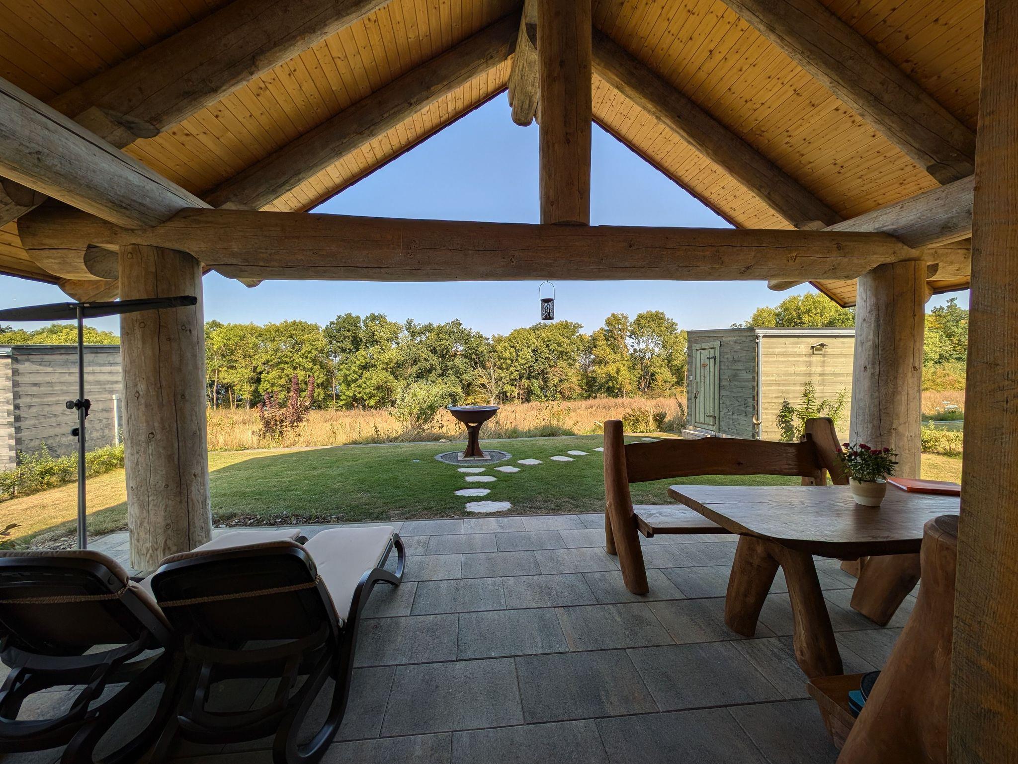 Exklusives Ferienhaus mit finnischem Saunahaus und komplett überdachter Terrasse.