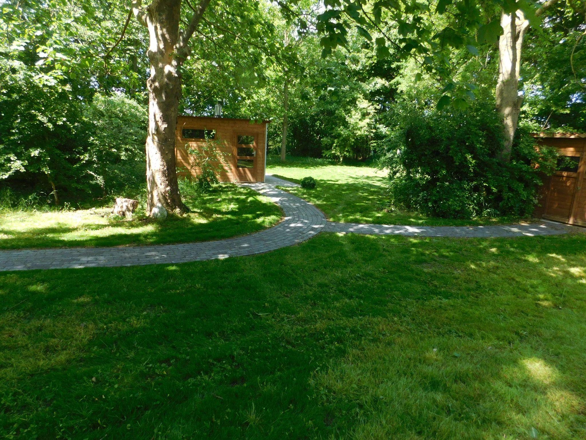 Im Gartenhaus ist eine holzbetriebene Sauna vorhanden.