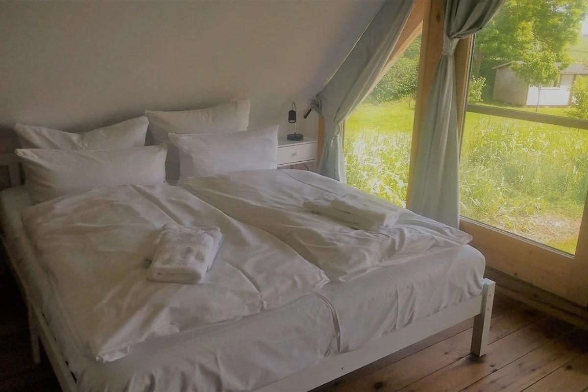 Das Ferienhaus, das im Jahr 2015 massiv erbaut wurde, zeichnet sich durch eine sichtbare Holzbalkendecke aus. Es wurde besonders Wert auf ökologische Baumaterialien, eine effektive Dämmung und umweltfreundliche Farben gelegt.