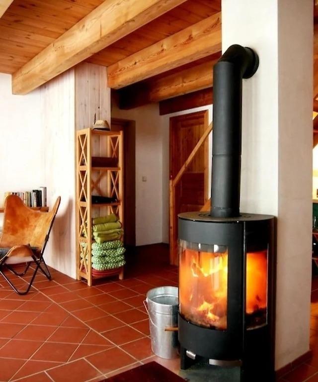 Da das Ferienhaus gut gedämmt ist, sollte der Kaminofen sparsam beheizt werden. Das Holz wird kostenlos gestellt.