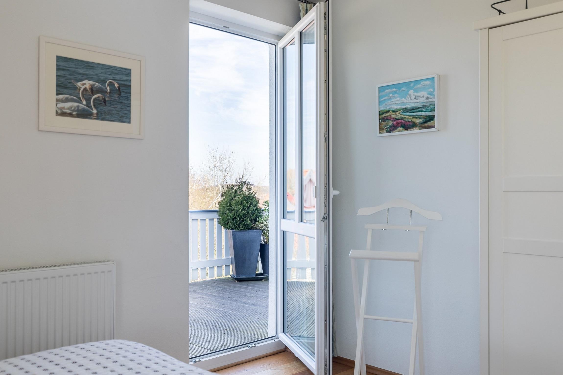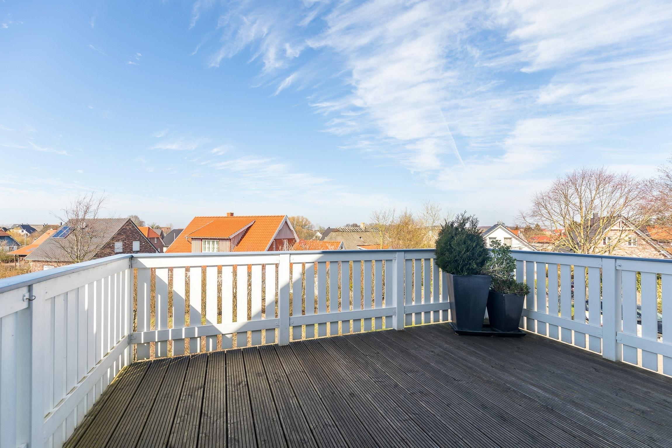 Ein Highlight ist der Balkon, der direkt vom größeren Schlafzimmer im Obergeschoss erreichbar ist.