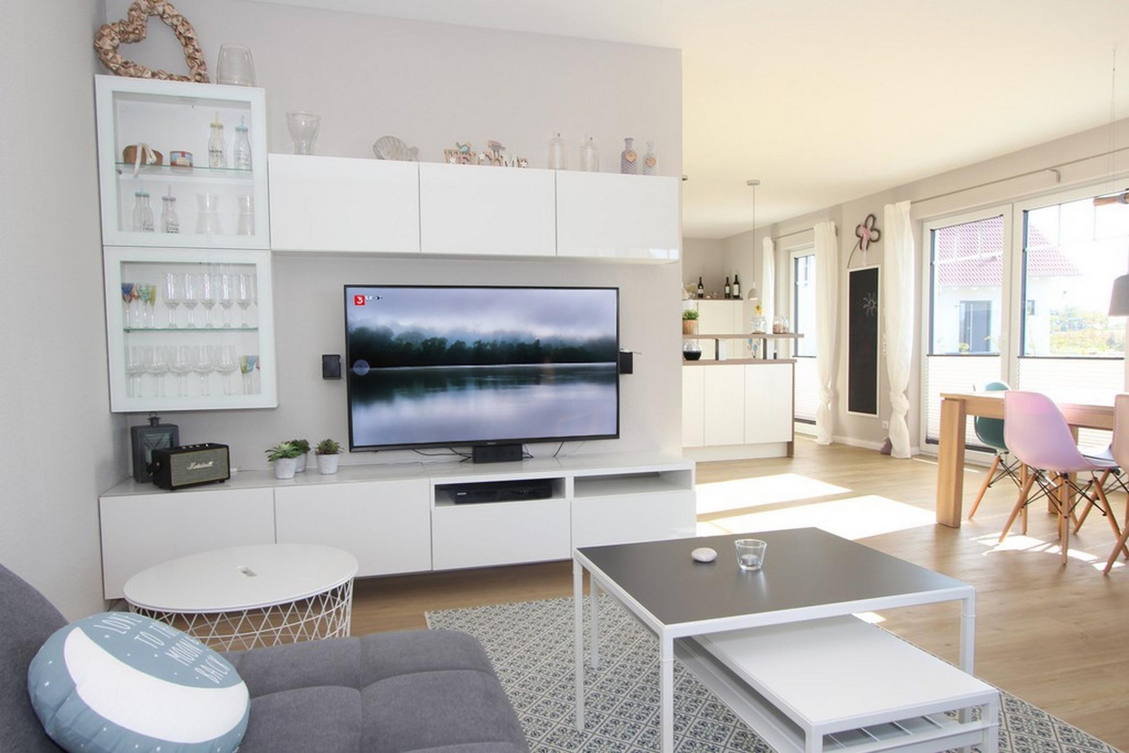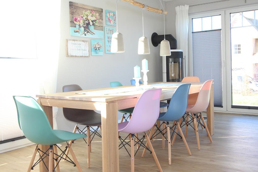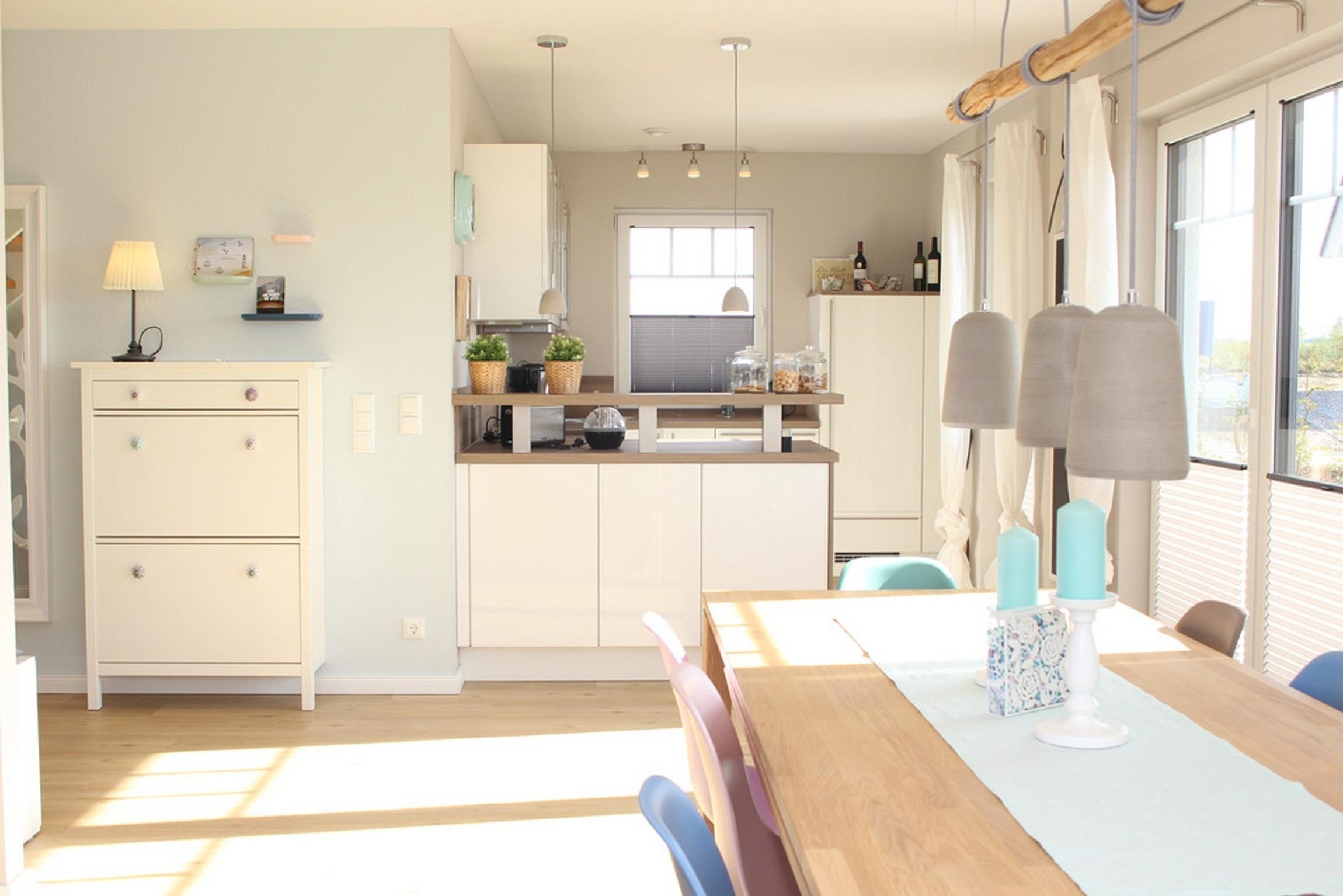 Den Mittelpunkt bilden im Erdgeschoss der große Familienesstisch mit passenden Stühlen sowie das große Ecksofa im offenen Wohnzimmer. Hier können alle zusammen essen, schnacken oder entspannen. Die offene Küche lädt ebenfalls zum geselligen Zusammensein [&] Kochen ein. Für die Kaffeetrinker unter unseren Gästen haben wir eine Nespresso-Kapselmaschine bereitgestellt.