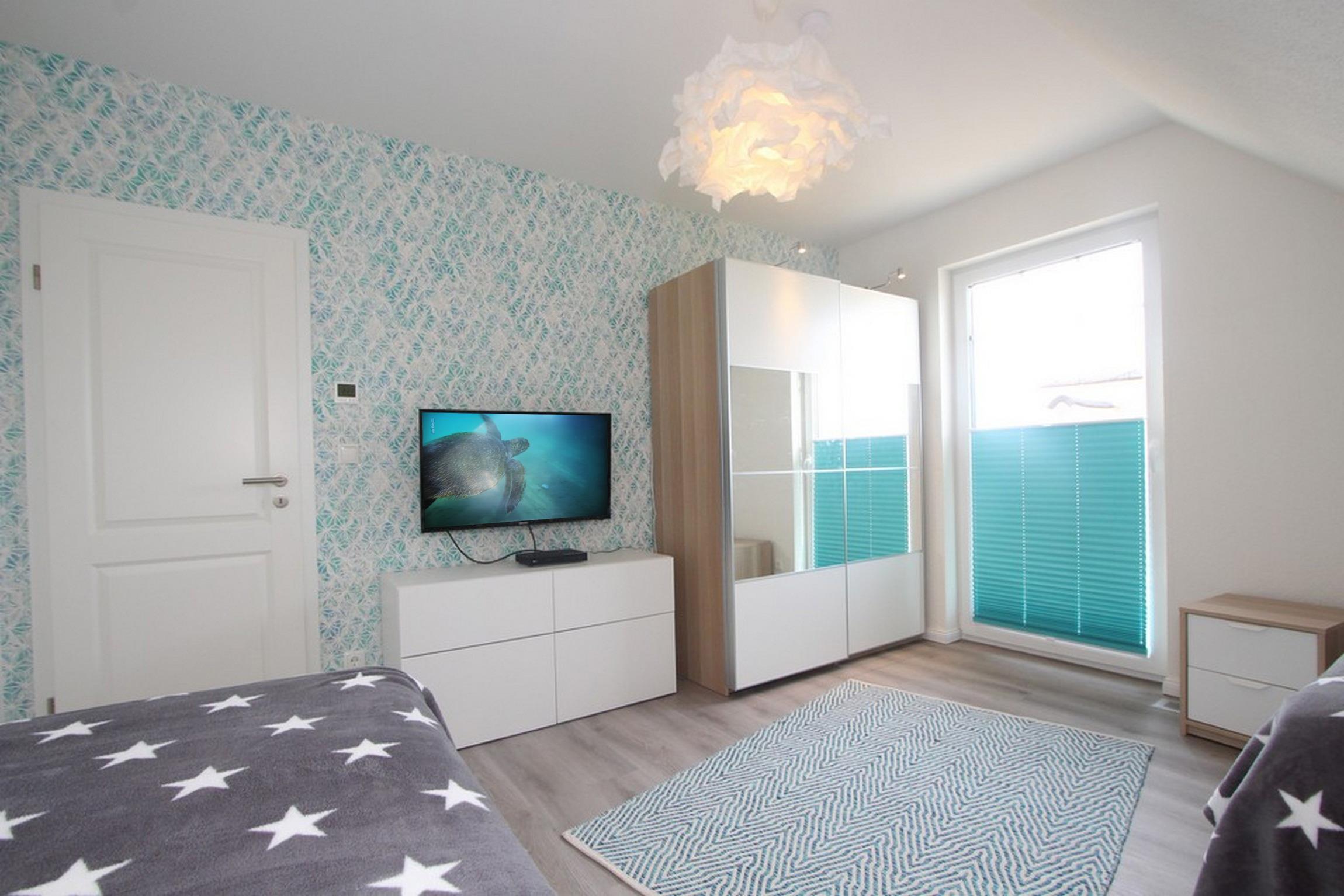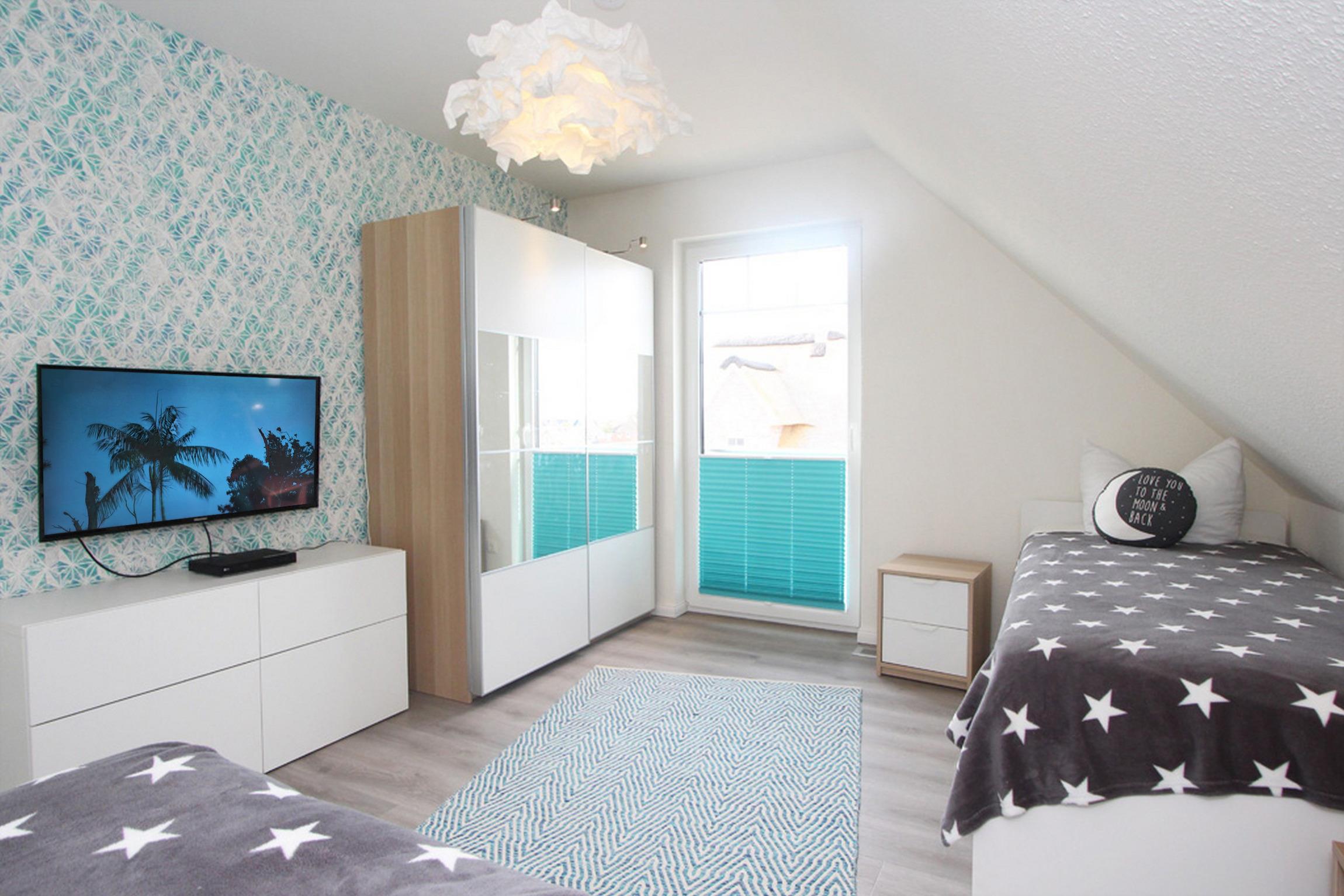 Das dritte Schlafzimmer ist mit zwei Betten (90/200) eingerichtet und bietet ebenfalls einen schönen Blick auf die Ostsee. Jedes Schlafzimmer verfügt über ein TV [&] Blu-Ray-Player. Die Betten sind für Sie, liebe Gäste, bei Anreise schon bezogen!