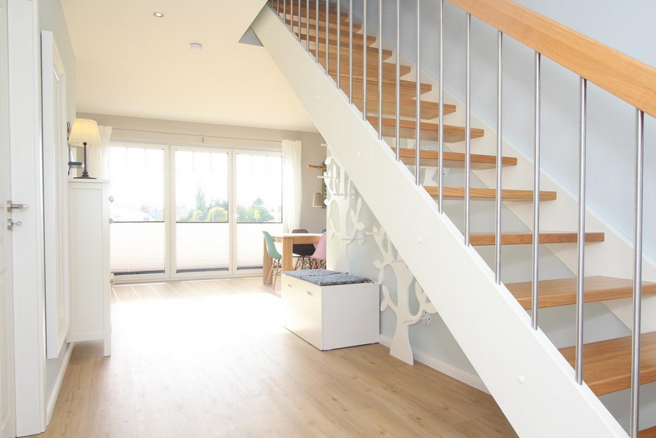 Über die helle Holztreppe erreichen Sie das ebenfalls großzügige 1. Obergeschoss. Hier befinden sich die drei weiteren Schlafzimmer:
