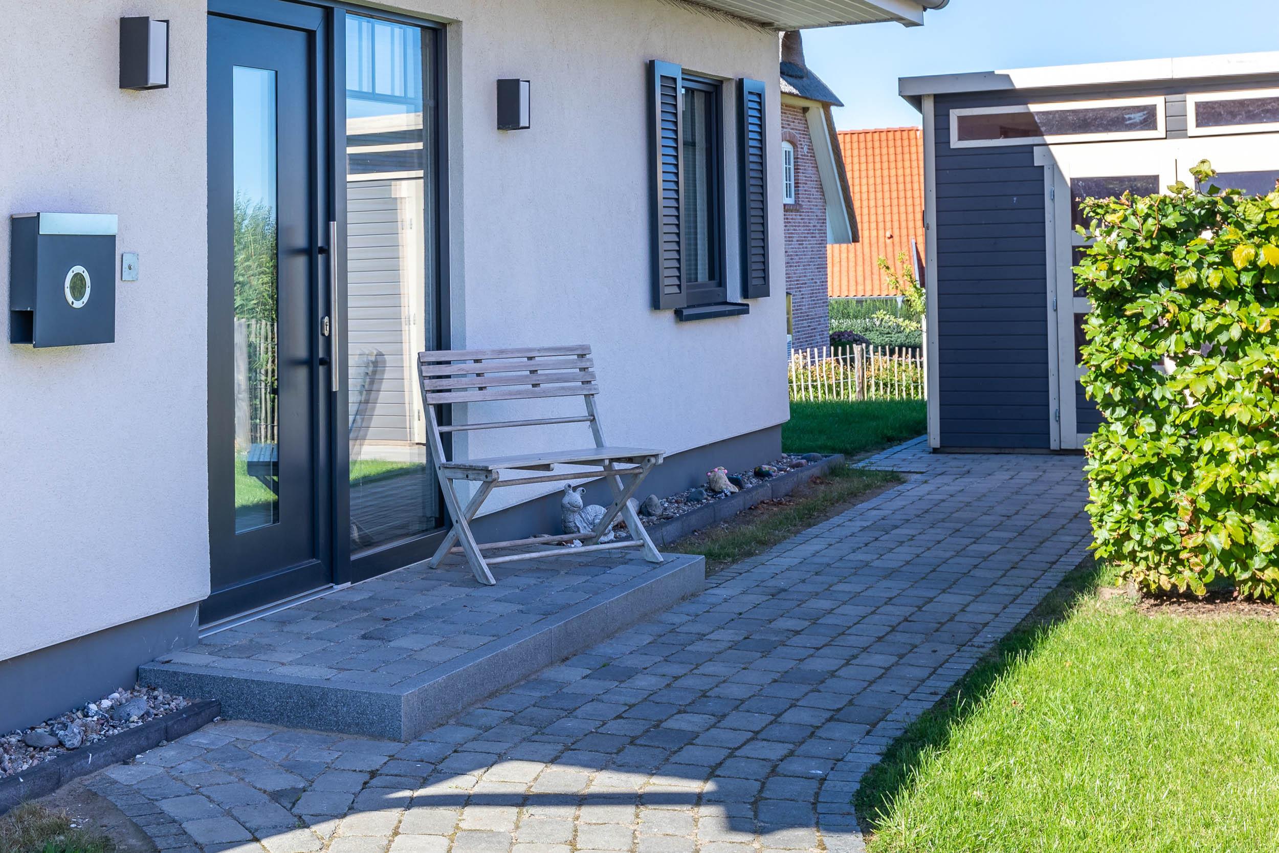 Am Haus befindet sich ein abschließbares Abstellhäuschen. Hier können Räder [&] Co. sicher untergebracht werden.