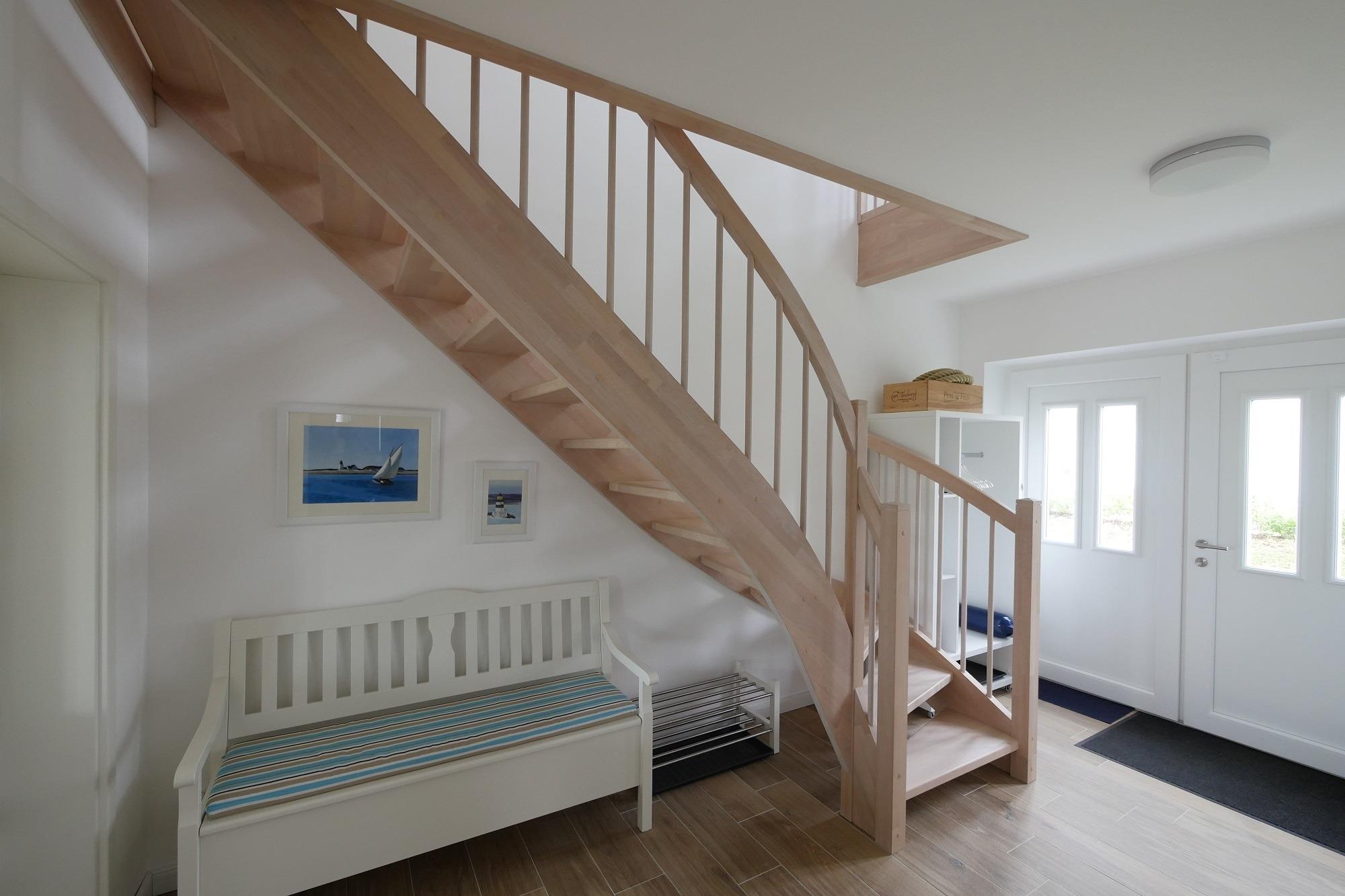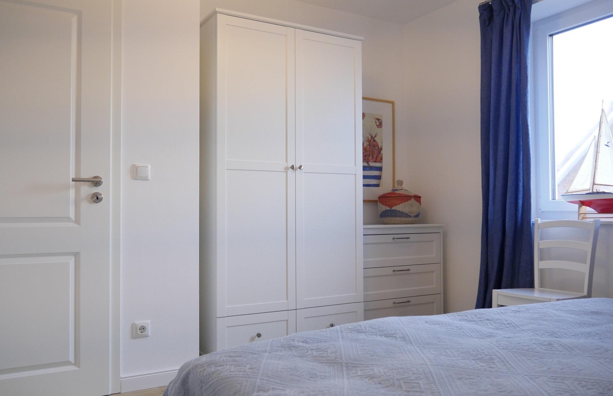 In den drei geräumigen Schlafzimmern finden bis zu sechs Personen (und ein zusätzliches Kleinkind) komfortabel Platz. Zwei der Schlafzimmer sind mit hochwertigen Massivholz-Doppelbetten ausgestattet, im dritten Schlafzimmer befinden sich zwei Einzelbetten und ein Schreibtisch, an dem man ungestört arbeiten kann. Eines der beiden Badezimmer befindet sich neben dem Hauseingang, so dass Sie nach dem Strandbesuch gleich unter die bodentiefe Dusche springen können. Das andere Badezimmer im ersten Stock ist mit einer hochwertigen Massivholzsauna ausgestattet, damit Sie sich zu jeder Jahreszeit aufwärmen können. Von der kleinen Galerie im Kapitänsgiebel aus können Sie sich anschließend beim Blick bis zum Meer entspannen.