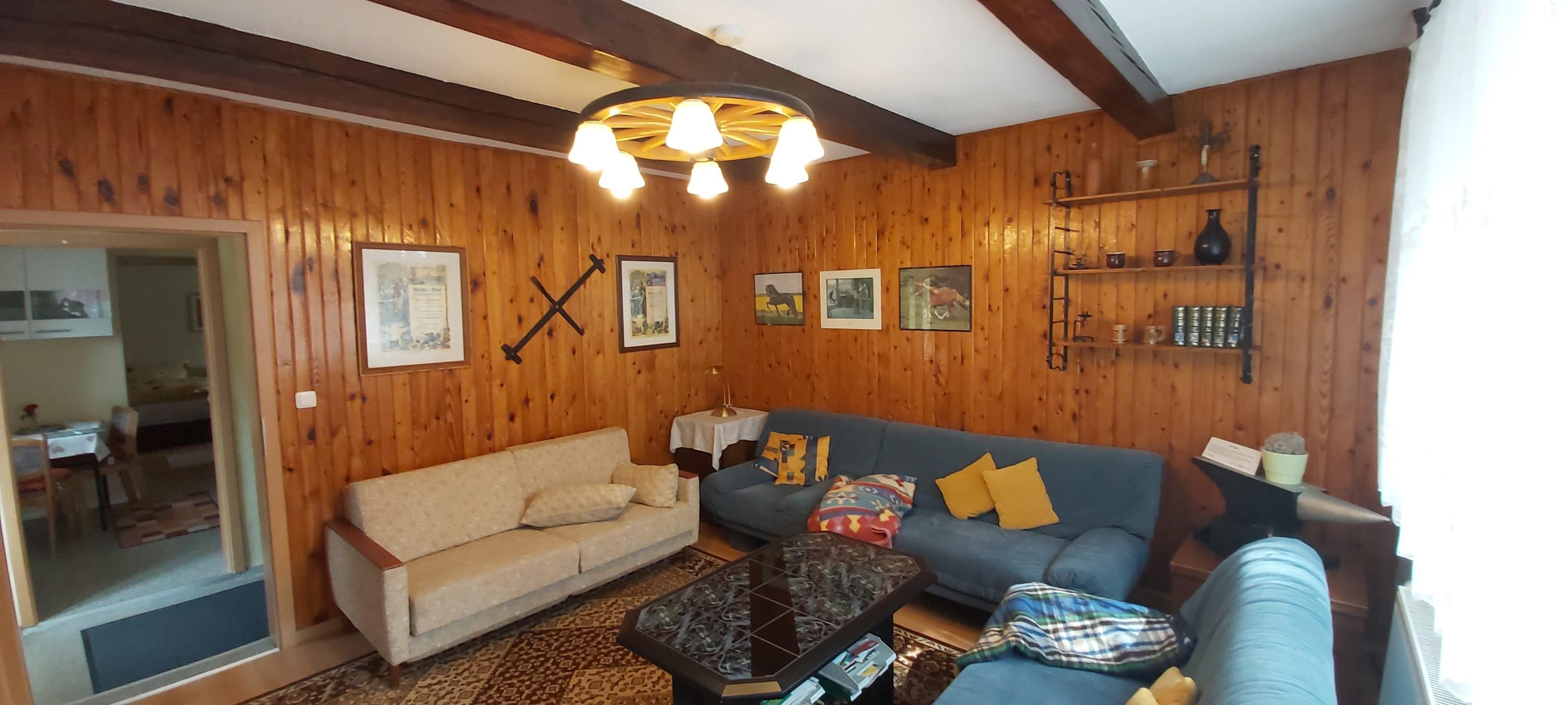 Im Oktober 2024 wurden im Wohnzimmer die Sitzgruppe (Sessel, 2-Sitzer, 3-Sitzer) ausgetauscht gegen zwei moderne Schlafcouchen mit einem rollbaren Tisch. In der Küche wurde ein neuer Esstisch mit Stühlen aufgestellt.