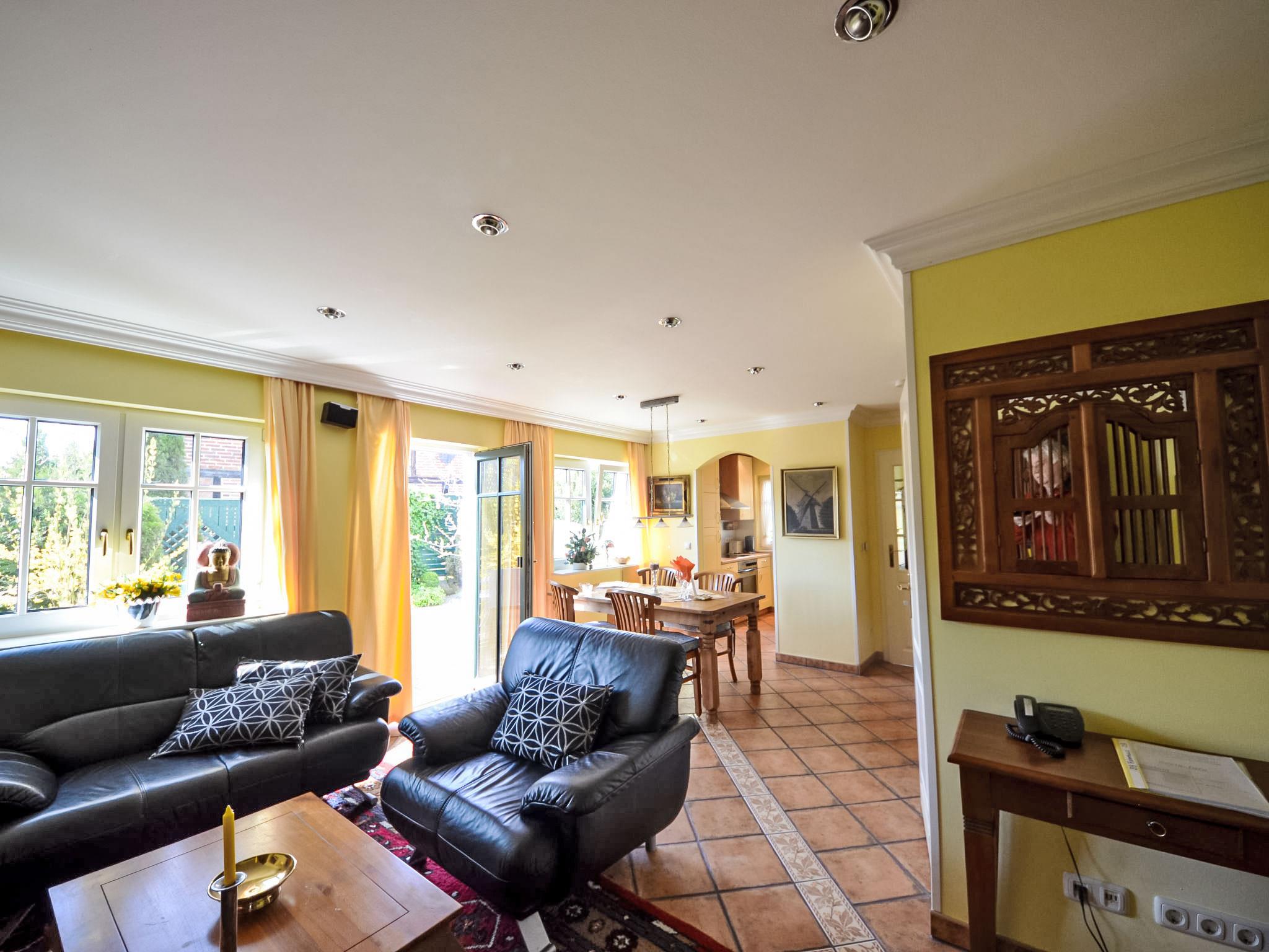 "Fischerhaus", 3-room terraced house 67 m2 on 2 levels, on the ground floor. Living/dining room with satellite TV, video, CD-player and hi-fi system. Open kitchen (oven, dishwasher, microwave, electric coffee machine). Sep. WC. Upper floor: 2 double bedrooms with sloping ceilings. Shower/WC. Terrace, small garden. Terrace furniture. Facilities: washing machine, dryer, children's high chair. Internet (WiFi, free). Parking (1 car) at the house. Please note: non-smoking house. Maximum 1 pet/ dog allowed. Smoke alarm, fire extinguisher. One free parking space available. Additional parking spaces can be provided at a price of EUR 4.00 / day at a distance of 300 m, on request and after pre-order.