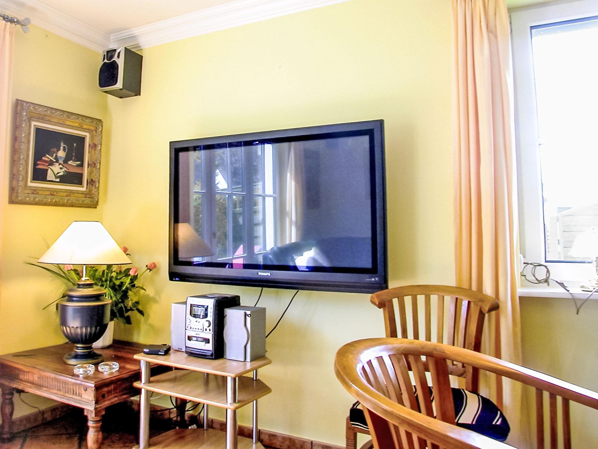 "Seeadler", 6-room semi-detached house 103 m2 on 3 levels, on the ground floor. Living/dining room with satellite TV, video, CD-player and hi-fi system. 1 small double bedroom. Open kitchen (oven, dishwasher, microwave, electric coffee machine). Shower/WC. Upper floor: 2 double bedrooms. Bath/shower/WC. Top floor: 2 small children's rooms with sloping ceilings, each room with 1 bed. Terrace, small garden. Terrace furniture, barbecue. Facilities: washing machine, dryer, children's high chair. Internet (WiFi, free). Parking (2 cars) at the house. Please note: non-smoking house. Maximum 1 pet/ dog allowed. Smoke alarm. The TV screen in the living / dining room is 120 cm tall. Two free parking spaces available. Additional parking spaces can be provided at a price of EUR 4.00 / day at a distance of 300 m, on request and after pre-order.