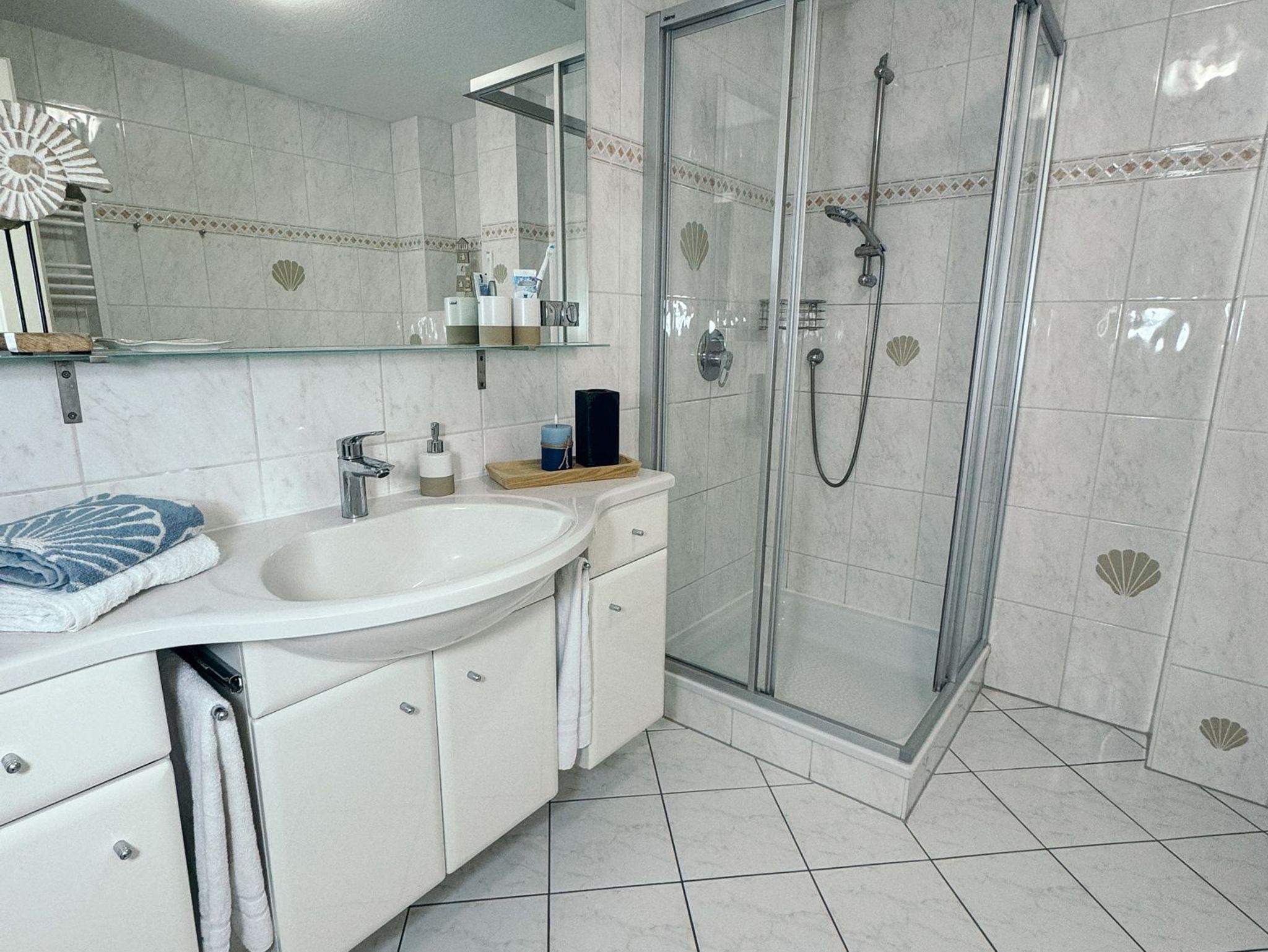 Weiterhin bietet die Wohnung zwei helle, geräumige Schlafzimmer, ein schönes Duschbad (mit WC und Fön) und ein zusätzliches Gäste-WC.
