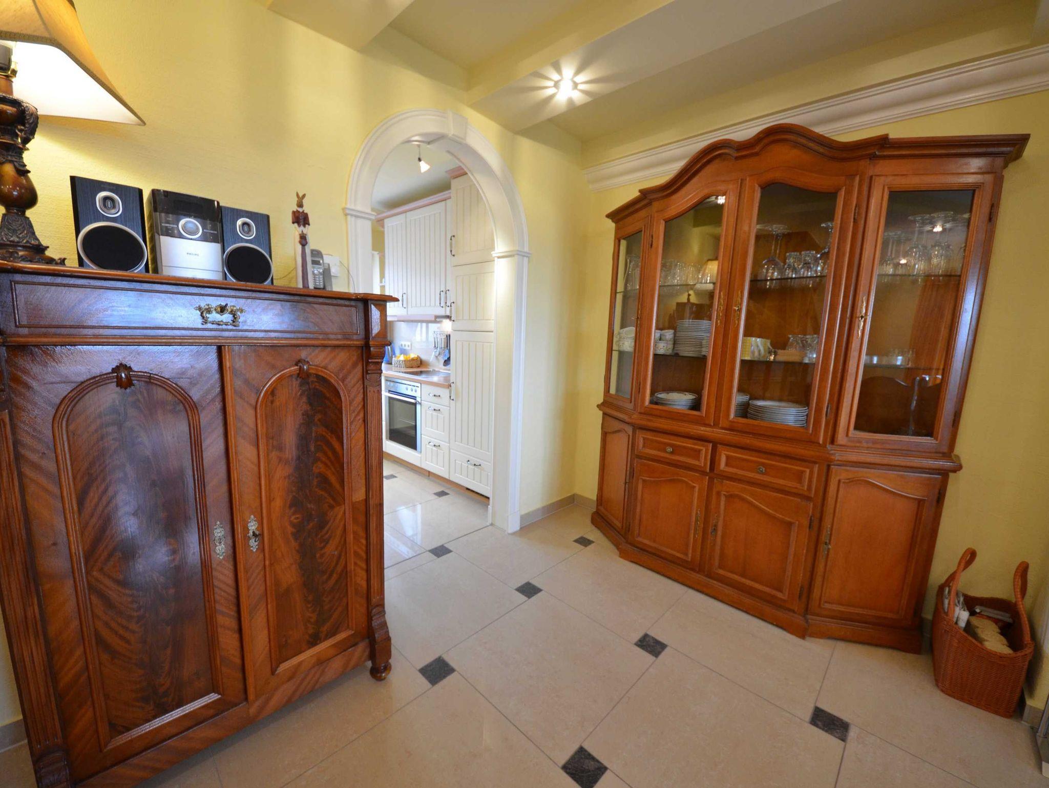 Die Sprossenfenster vermitteln eine gemütliche Atmosphäre und passen zum Charakter des Dorfes. Großzügiges Wohn-/Esszimmer, mit Stereo, CD, teils antike Schränke, Garderobe, Schuhschrank, Ledergarnitur, Opiumtisch, Geschirrschrank, Spiegel, Wände dekoriert mit Gemälden. Die Schlafzimmer sind mit Spiegeln und Gemälden dekoriert, teils elektrische Rollläden und Fliegenrollos mit antiken oder Einbauschränken.