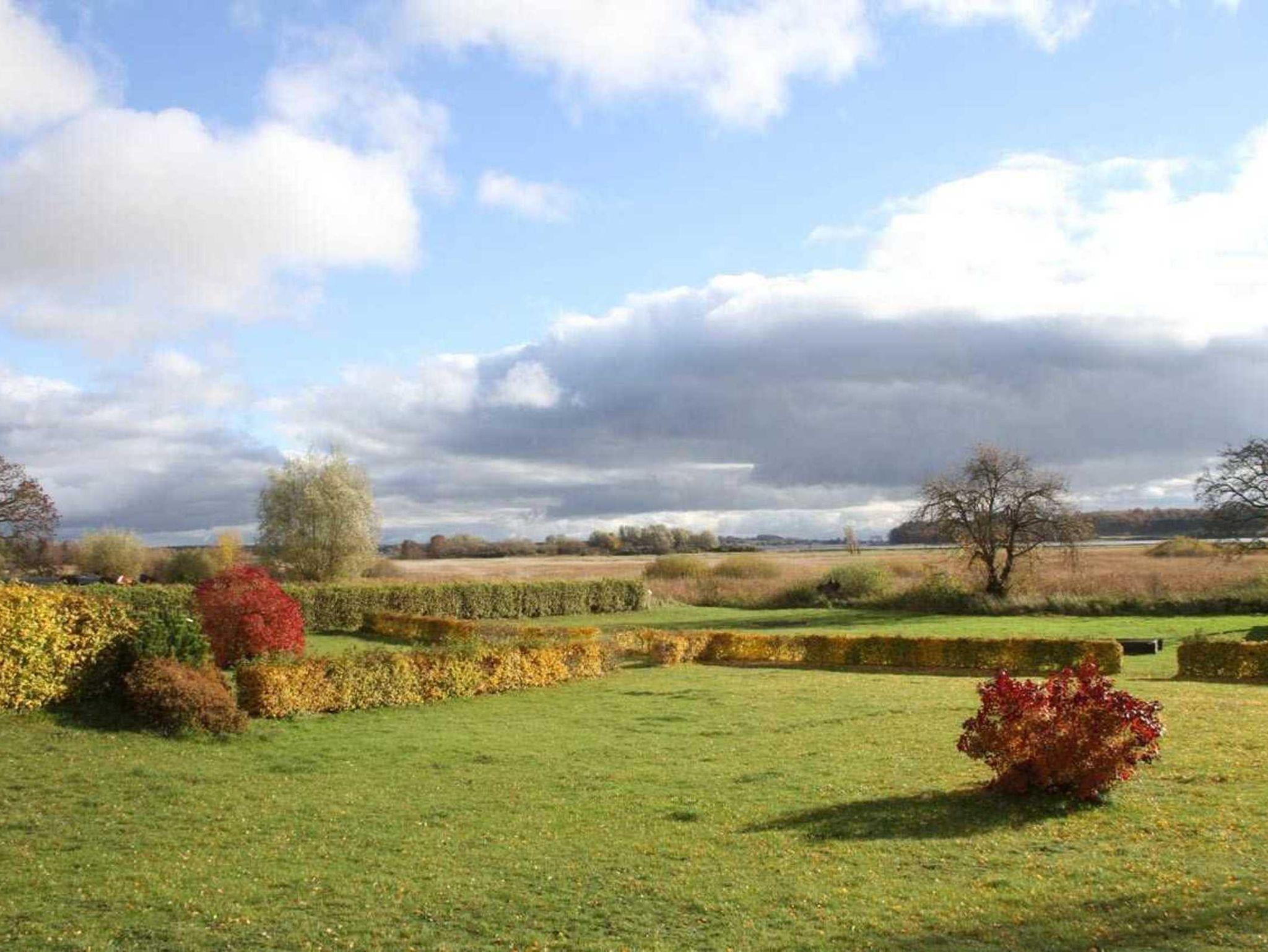 Vom Wohn-/Esszimmer und der Terrasse mit dem angrenzenden, großen Grundstück aus hat man einen herrlichen Meerblick auf den Greifswalder Bodden, vom Schlafzimmer aus auf die „Zickerschen Alpen“.