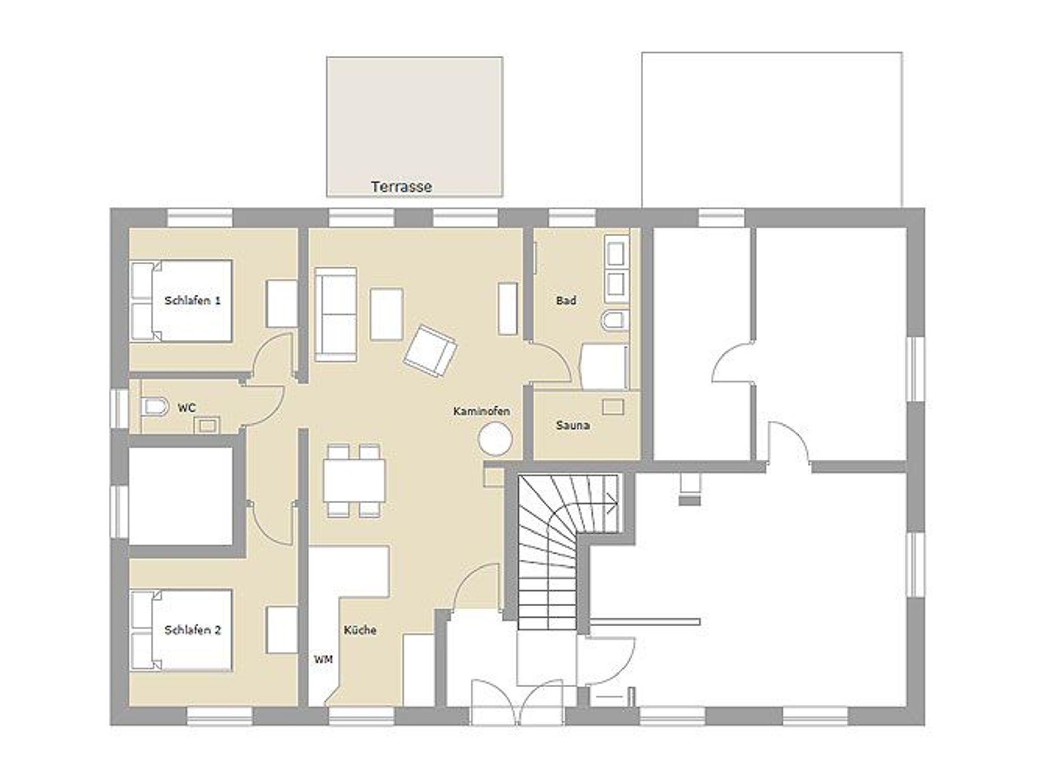 Eine bequeme Couchecke lädt zu gemütlichen Stunden vor dem Kaminofen ein. Zum technischen Equipment gehören u.a. ein QLED-Smart-TV mit riesigen 50 Zoll Bilddiagonale, ein DVD-Player sowie eine Musikanlage mit Radio/CD-Player/Bluetooth-Schnittstelle und USB-Anschluss. Superschnelles W-LAN (Glasfaser-Anschluss mit bis zu 250 Mbit/s) ist kostenfrei verfügbar.
