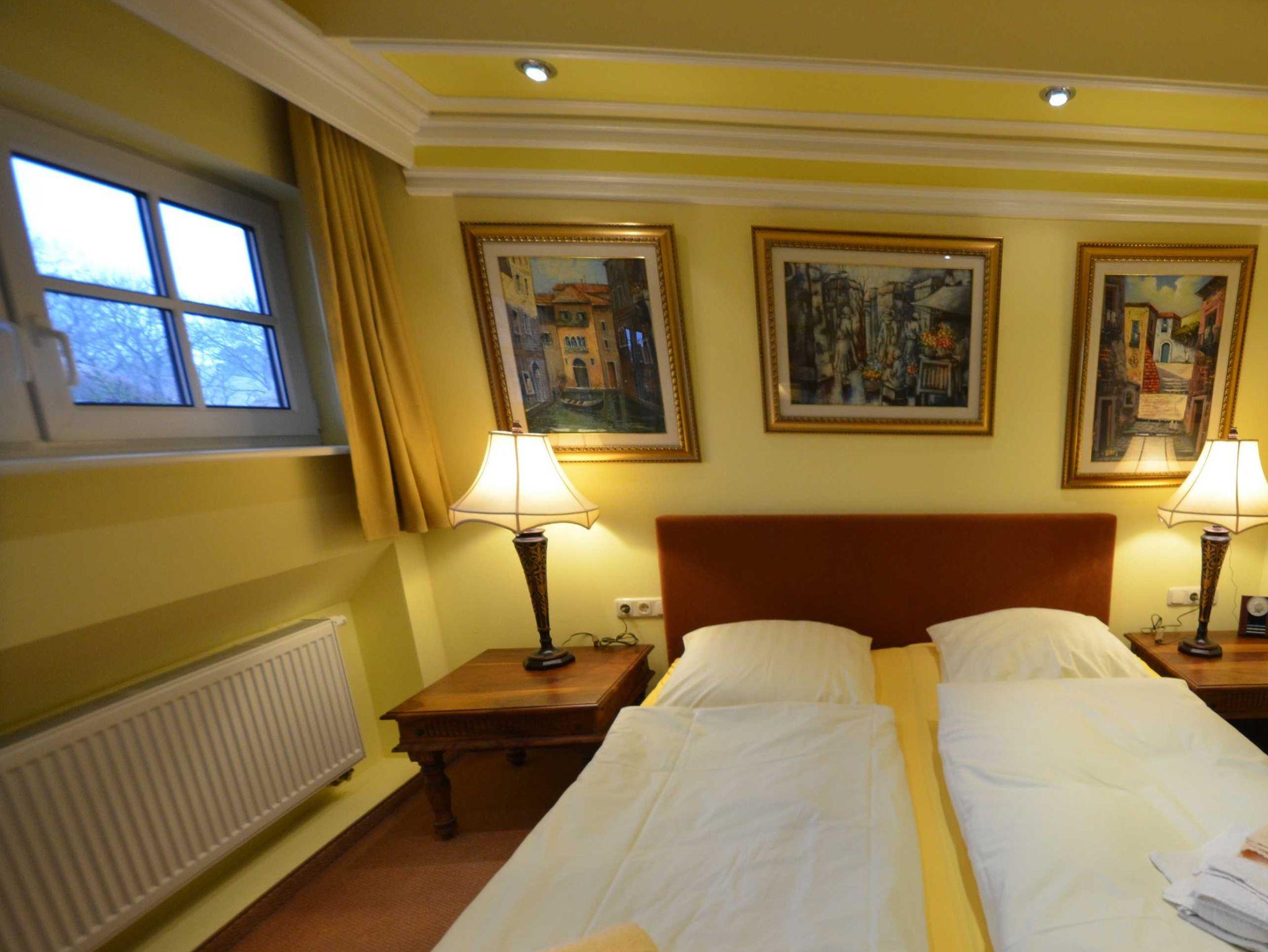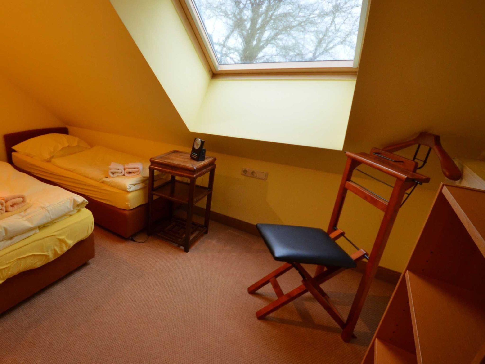 Doppelbett 180 x 200 und zwei Einzelbetten 90 x 200, Radiowecker, mit Bildern dekoriert