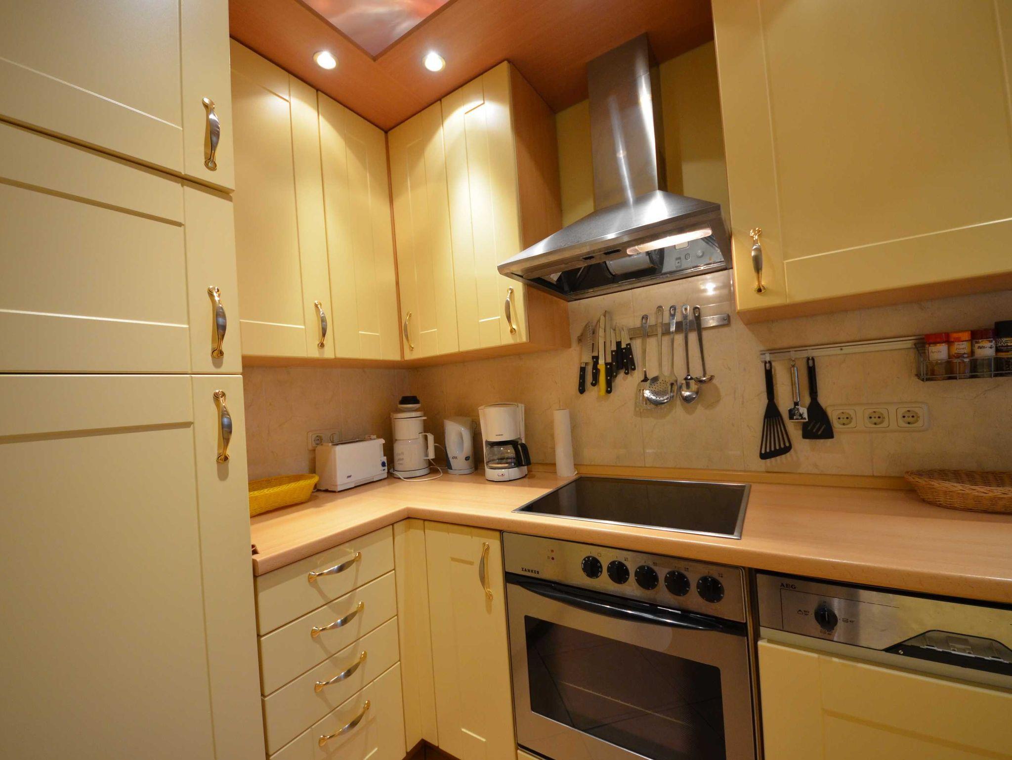 Fußbodenheizung, schöne moderne Einbauküche in arktisgelb, Geschirrspüler höher