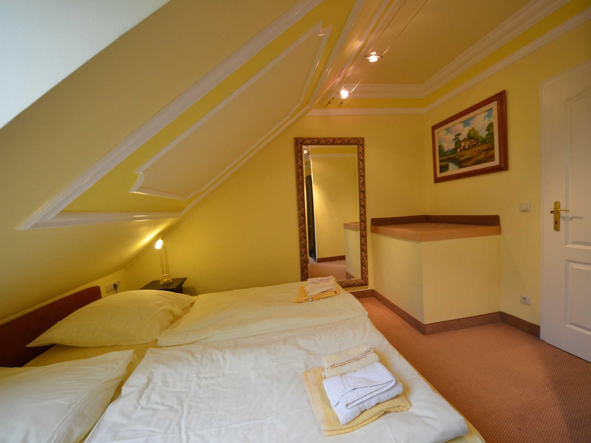 Doppelbetten jeweils 160 x 200 und 180 x 200, mit aufgezogener Bettwäsche. Radiowecker, mit Bildern dekoriert. Große Ganzkörperspiegel. Ein weiterer TV in einem Schlafzimmer.