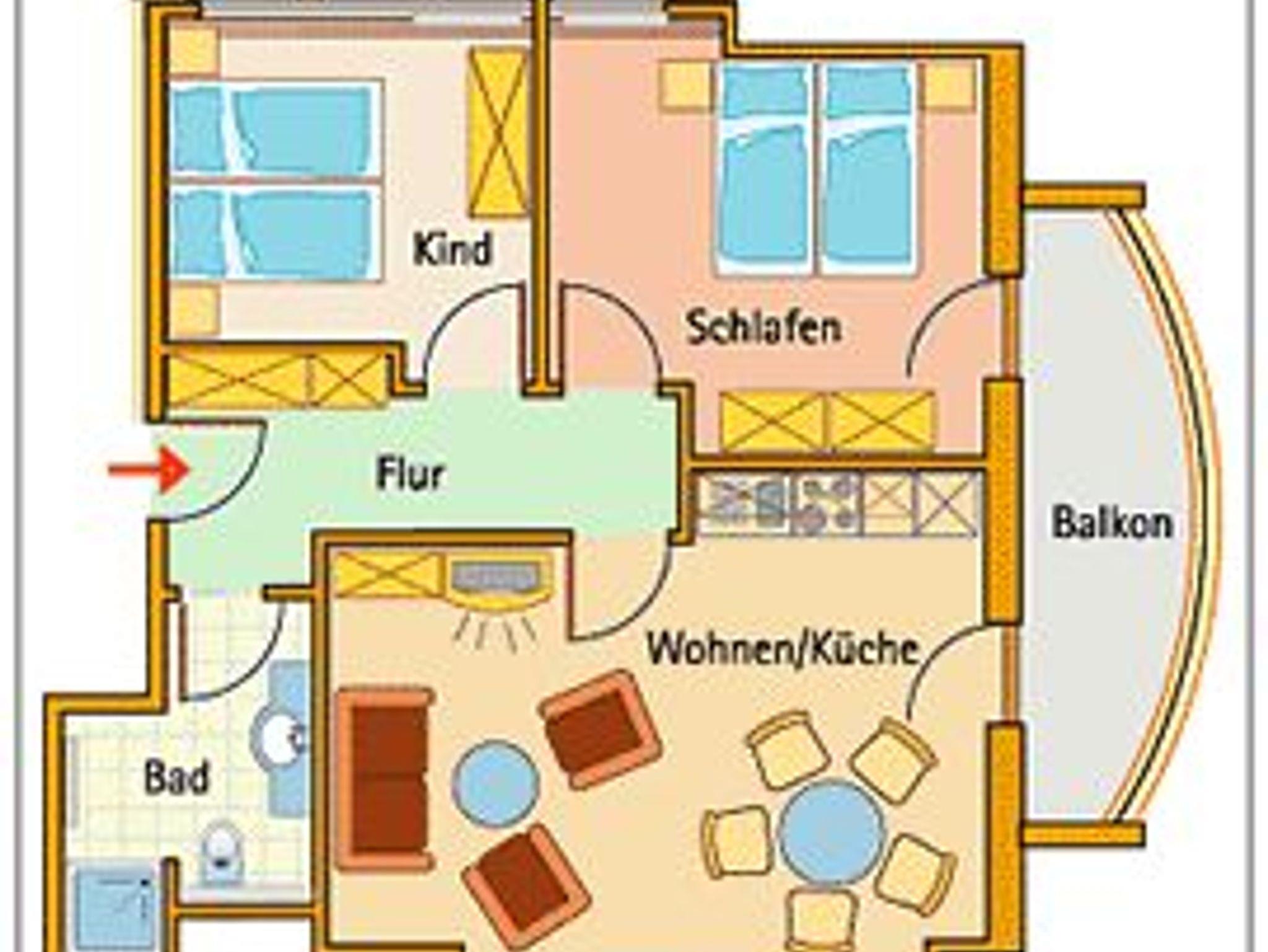 Ausreichend schönes Geschirr und Besteck für mind.vier Personen.Zwei Schlafzimmer für je 2 Personen,Kleiderschränke,Kommode oder Sitzgelegenheit, ein Schlafzimmer mit Ausgang zu großen Sonnenbalkon.