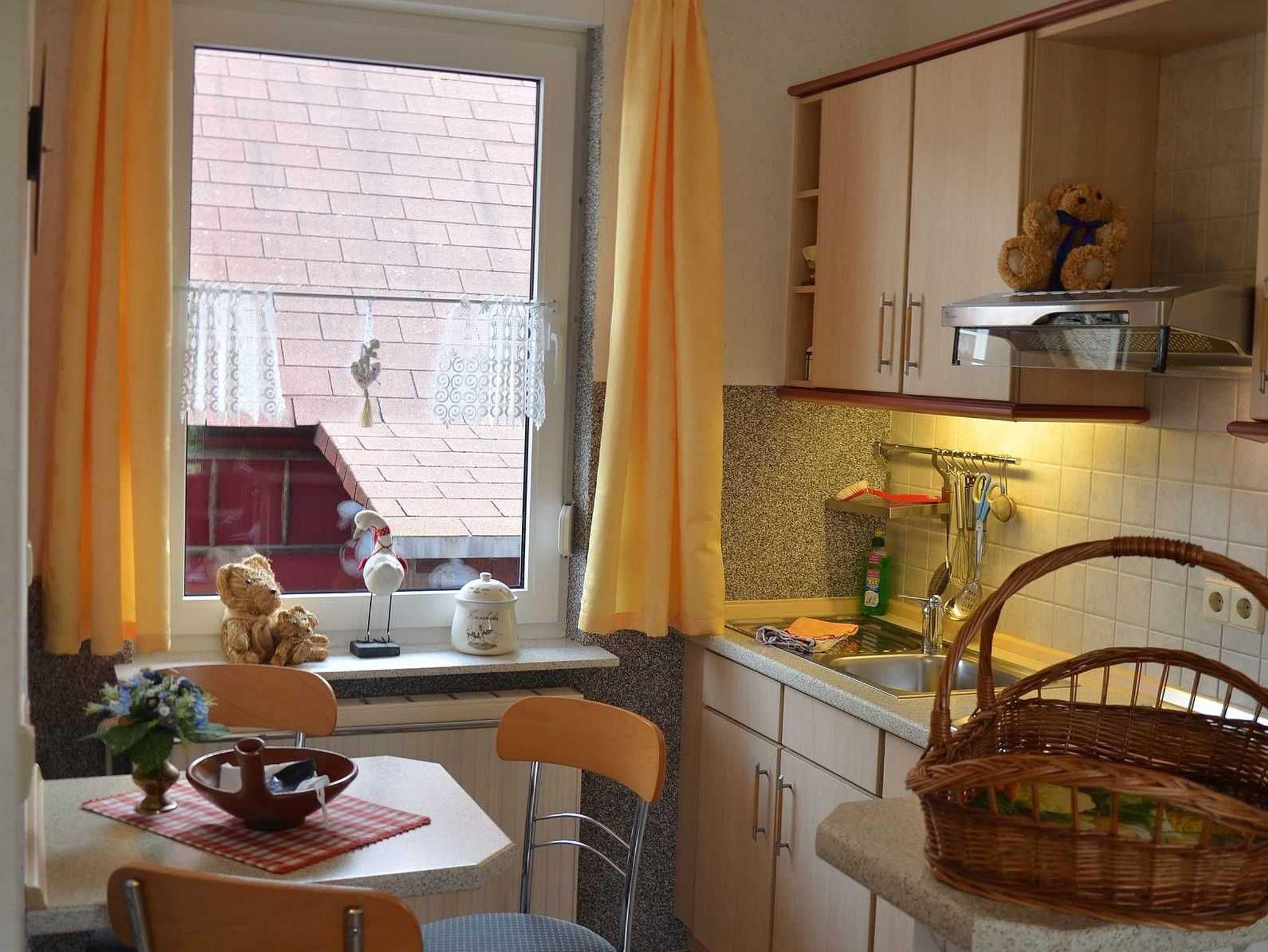 Das gemütliche 1 Raumappartement (Nichtraucher) bietet mit seinen ca. 28 qm ausreichend Platz für 2 Personen. Der Wohn- Schlaf- & Essbereich umfasst ein Doppelbett (Boxspring 180x200) mit Nachtischkonsolen, einen Kleiderschrank sowie eine geschmackvolle Couchecke mit Sessel und Couchtisch und ein TV-Gerät. Angrenzend befindet sich die Einbauküchenzeile mit einem 2-Plattenherd, Abzugshaube, kleinen Backofen, Spüle, Kaffeemaschine, Wasserkocher, Toaster sowie diverse Küchenutensilien. Das geflieste Tageslichtbad verfügt über eine Dusche, WC, Waschtisch und einen Fön. WLAN inklusive. Die bestuhlte und eigene Terrasse lädt zum Verweilen ein. Das separate und gemütliche Blockhaus auf dem Grundstück der Vermieter, steht allen Gästen der Pension zur Verfügung. Ein gemütlicher Grillabend findet in der Saison 1 x wöchentlich zusammen mit den Vermieter statt. Genauere Informationen erhalten Sie vor Ort. Auf Anfrage können Sie vor Ort ebenfalls den Brötchenservice in Anspruch nehmen sowie das Frühstück p.P. für 7,00 Euro dazu buchen. Bis 14 Tage vor Anreise können Sie die Erstausstattung eines Wäschepaketes für 6,00 Euro p.P. dazu buchen bzw. durch eigene ergänzen. Haustiere sind nicht erlaubt.