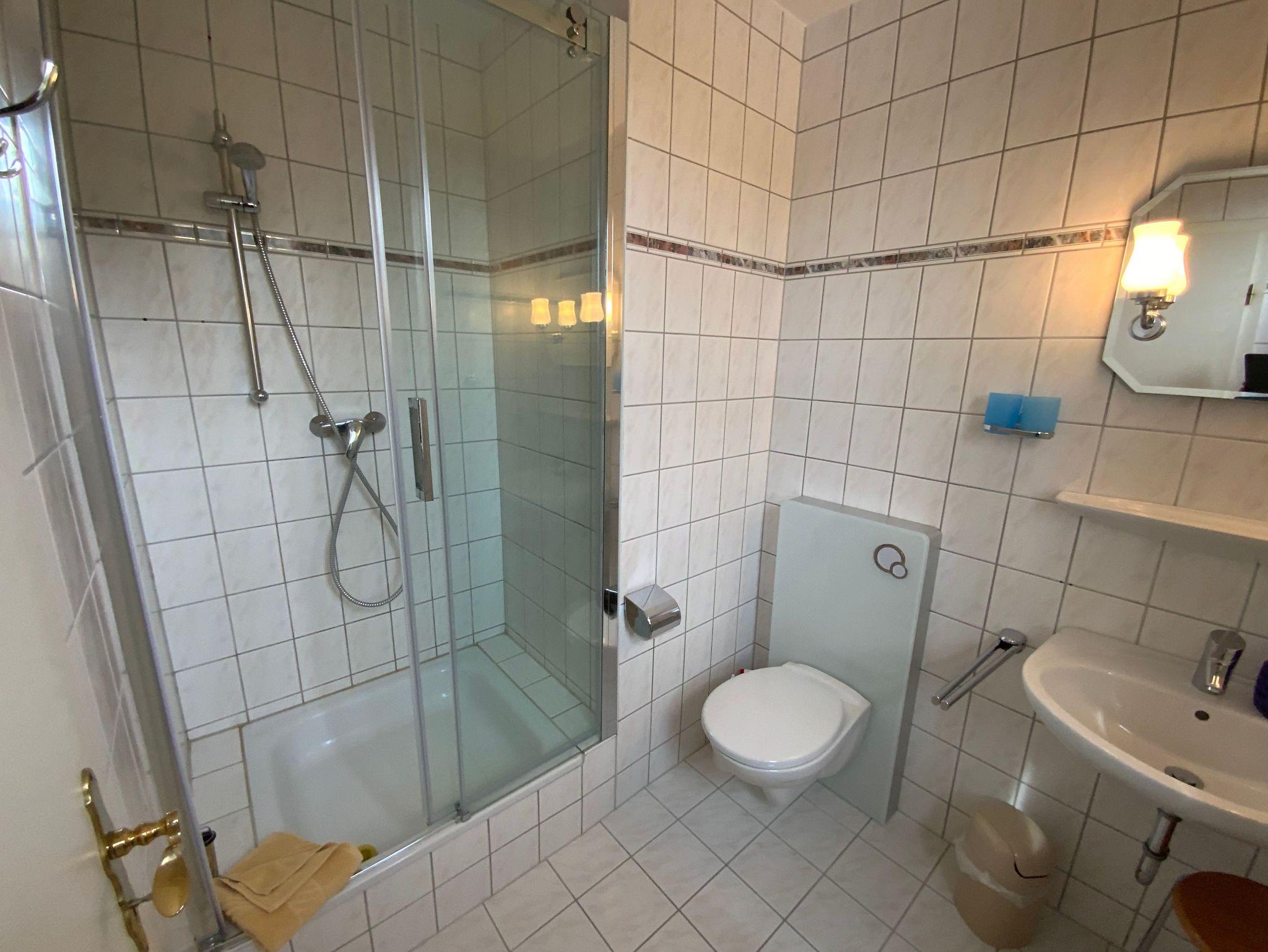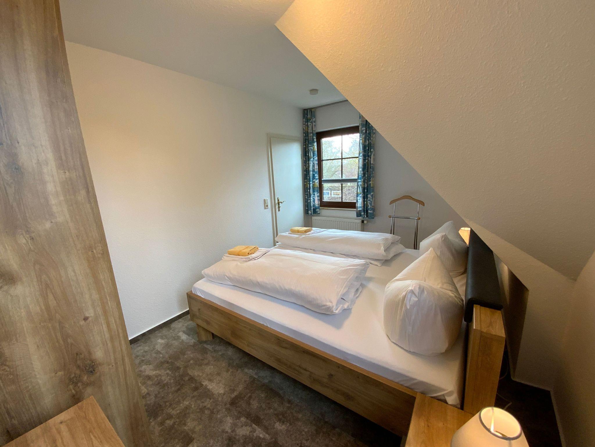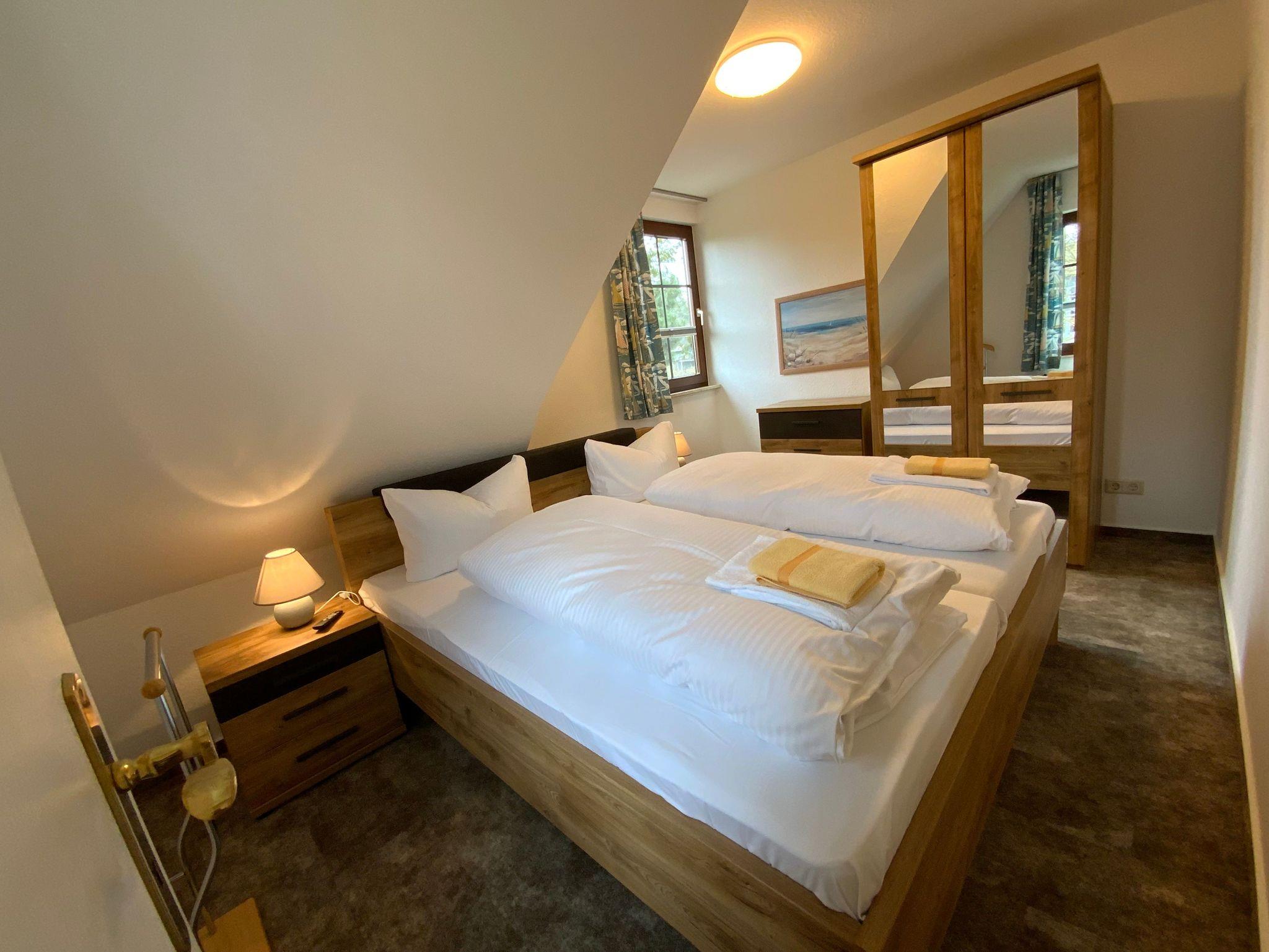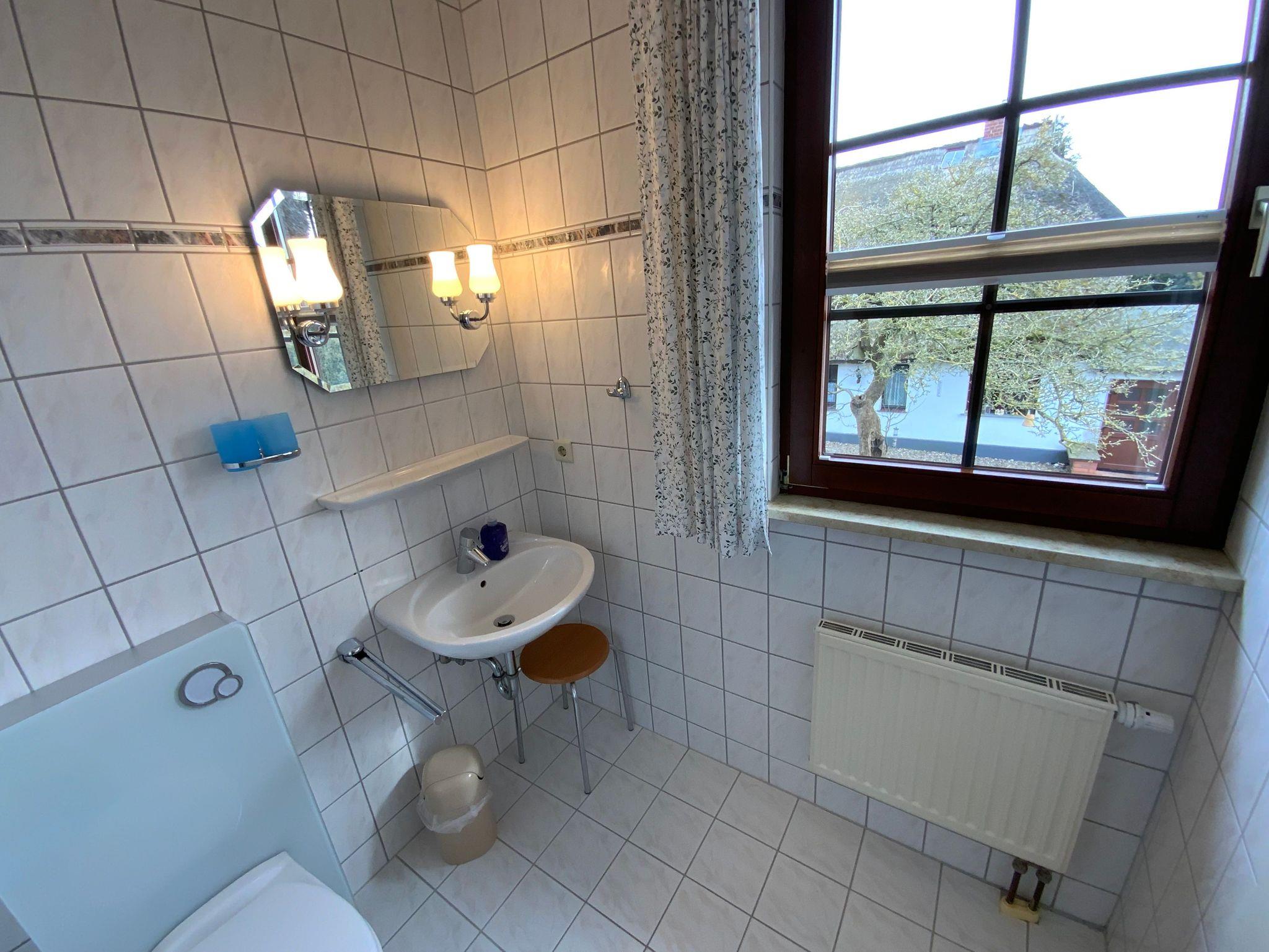 Die Ferienwohnung befindet sich im Obergeschoß und besteht aus einem Wohnraum mit Sitzgruppe und TV sowie einem Schlafraum mit einem Doppelbett. Die Ferienwohnung verfügt zudem über ein Duschbad und eine moderne Küchenzeile. Auf dem großen Grundstück steht Ihnen eine Liege und Spielwiese sowie ein Grillplatz zur Verfügung.