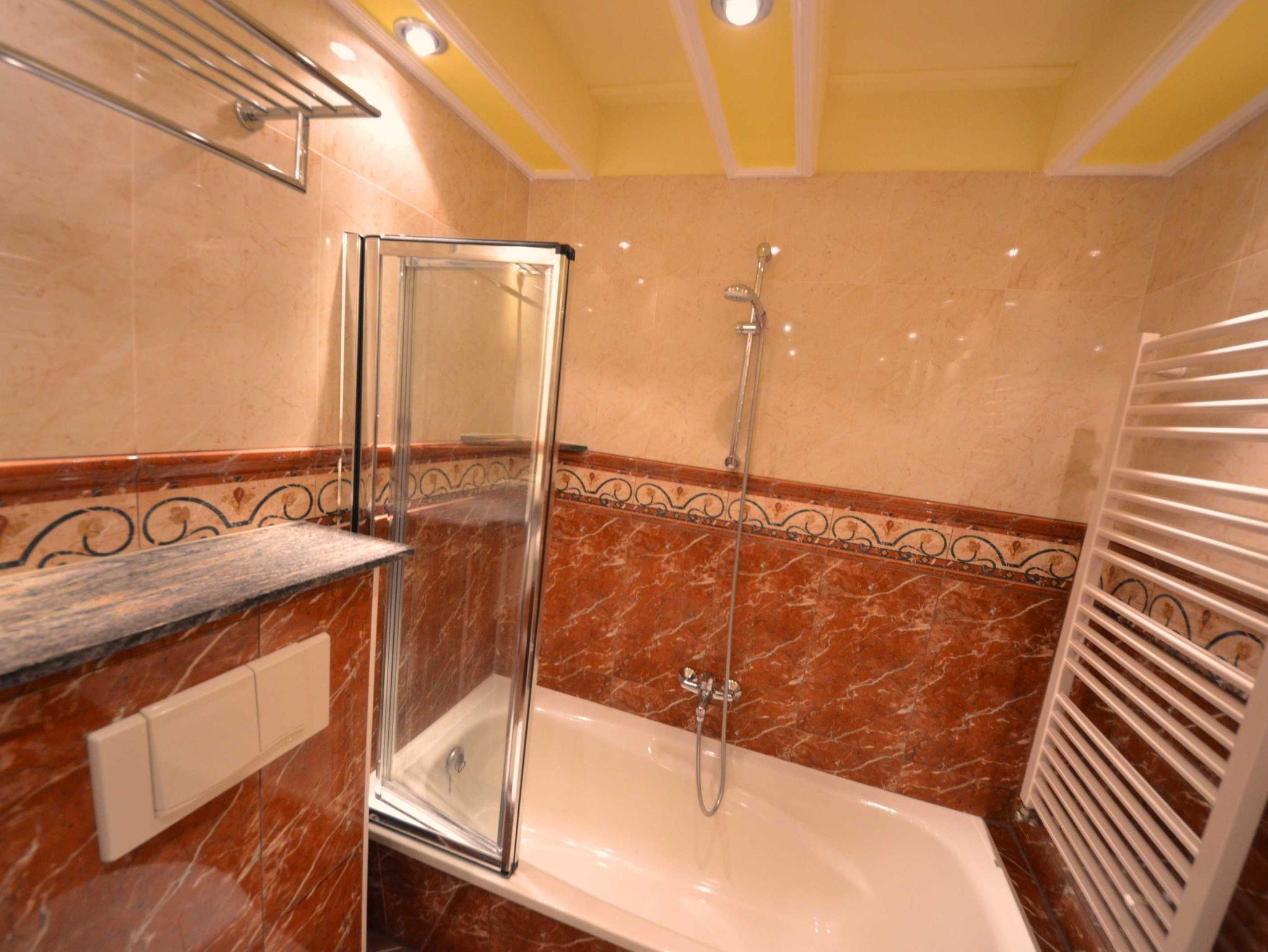 1 Bad mit Wanne / Dusche aus Naturstein / Granit, Bidet, Fön und