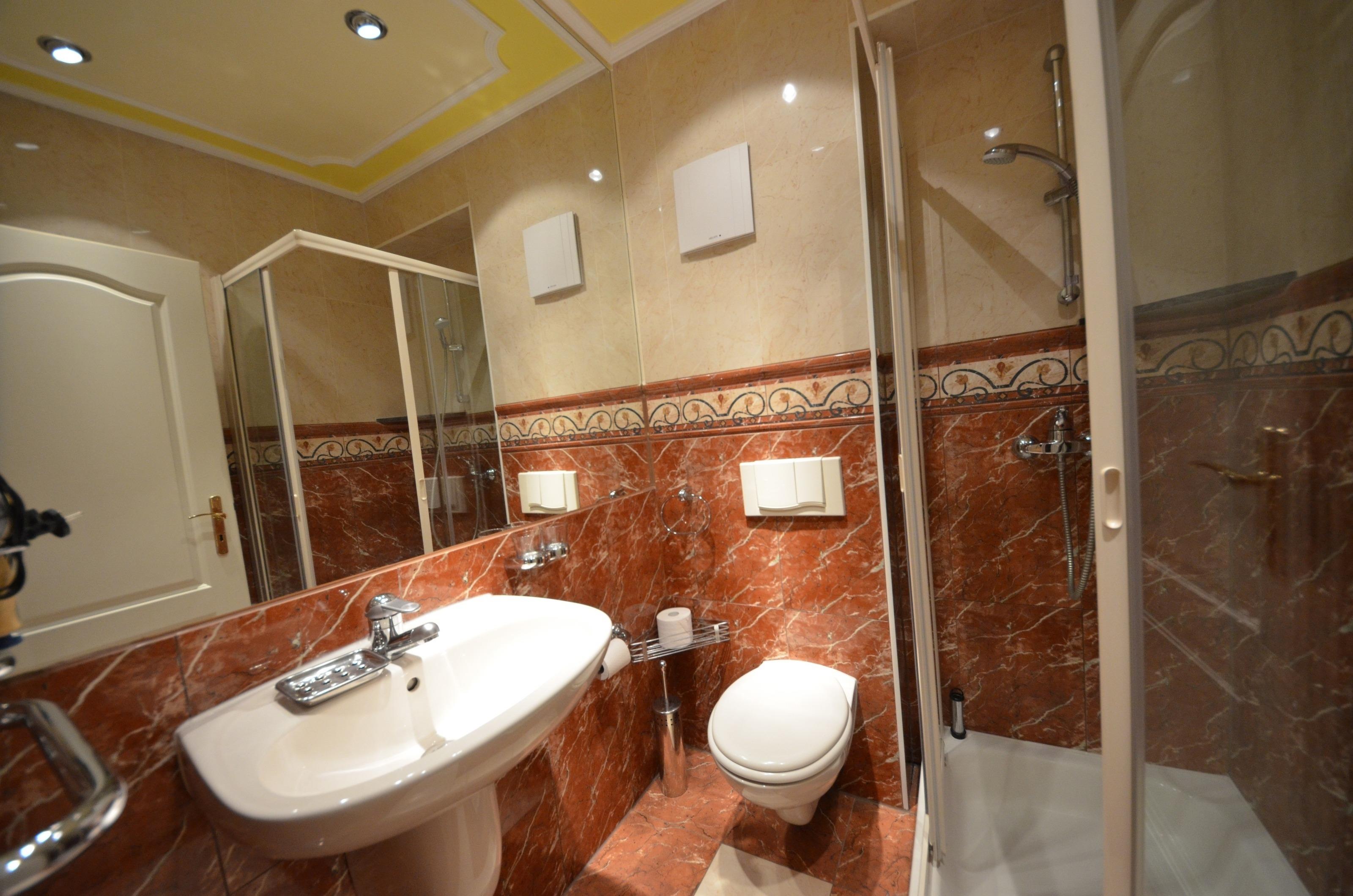 1 Bad mit Dusche aus Naturstein/Granit mit Fön und Schminkspiegel