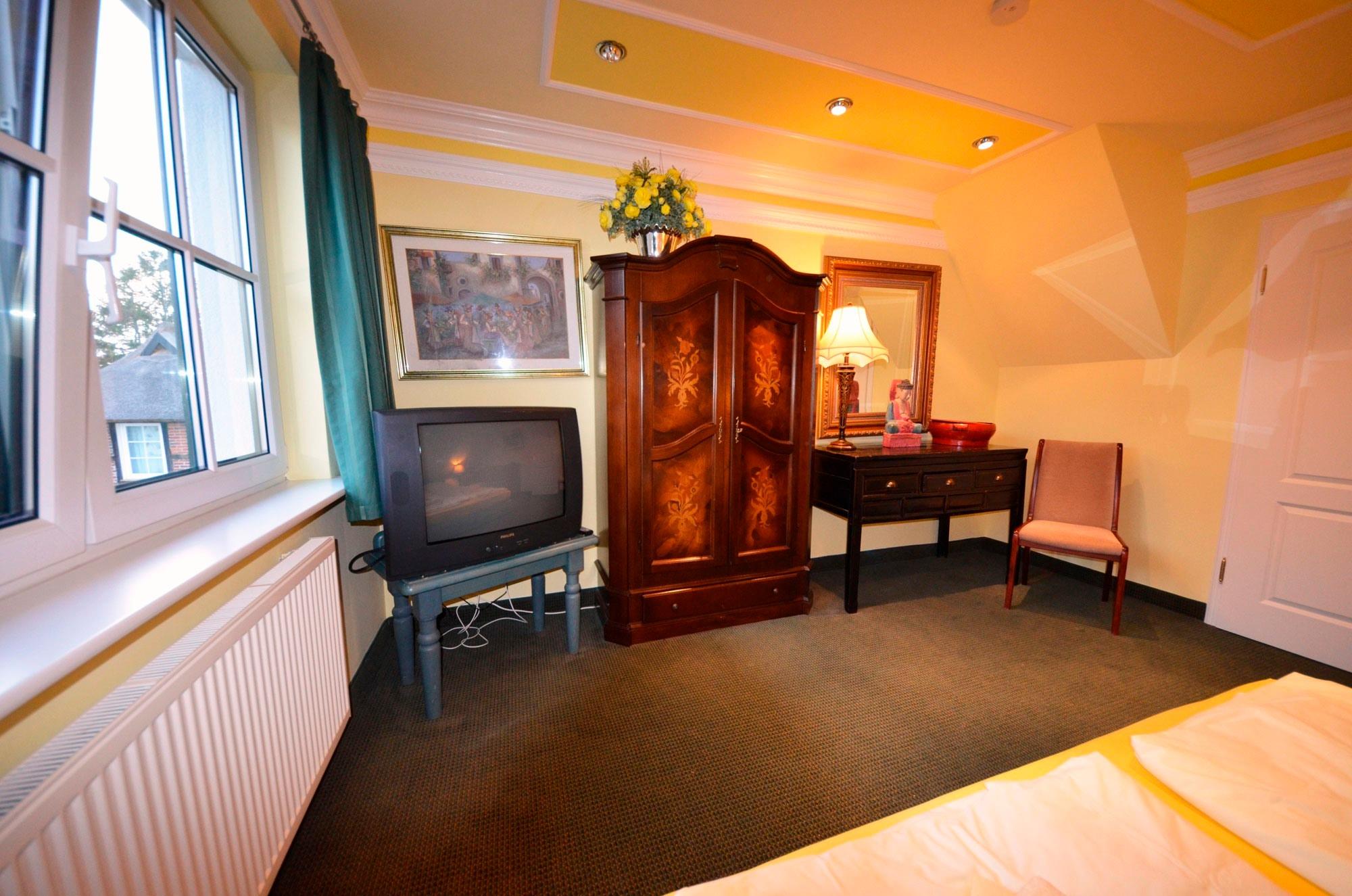 2 Doppel - Schlafzimmer, je mit 180x200er Bett, 1 x extra TV mit 72er Bild, aufgezogene Bettwäsche, Radiowecker, mit Bildern dekoriert, große Ganzkörperspiegel. Babybett 70 x 140 (kostenlos) in einem der Schlafzimmer mit Bettwäsche.