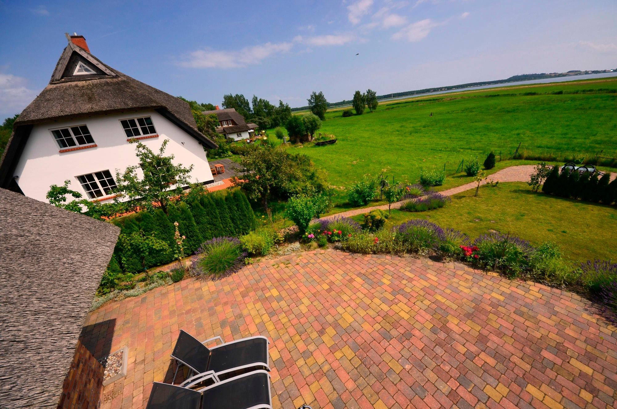 Die Ferienwohnung liegt in Groß Zicker, mit eines der schönsten Inseldörfer auf der Halbinsel Mönchgut. Die reetgedeckte und verklinkerte Doppelhaushälfte liegt in der erste Reihe mit unverbaubarem herrlichem Blick auf die Ostsee und die gegenüber liegenden Orte Thiessow und Klein Zicker.