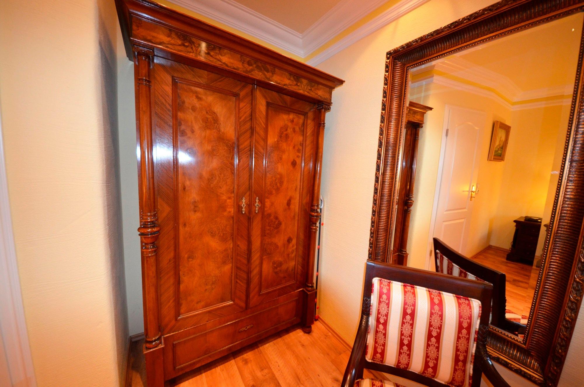 Radiowecker, Wände mit Bildern dekoriert, antiker-Gründerzeit Wäsche/Kleiderschrank, nach Voranmeldung: 1 Babyreisebett (kostenlos) mit Bettwäsche.