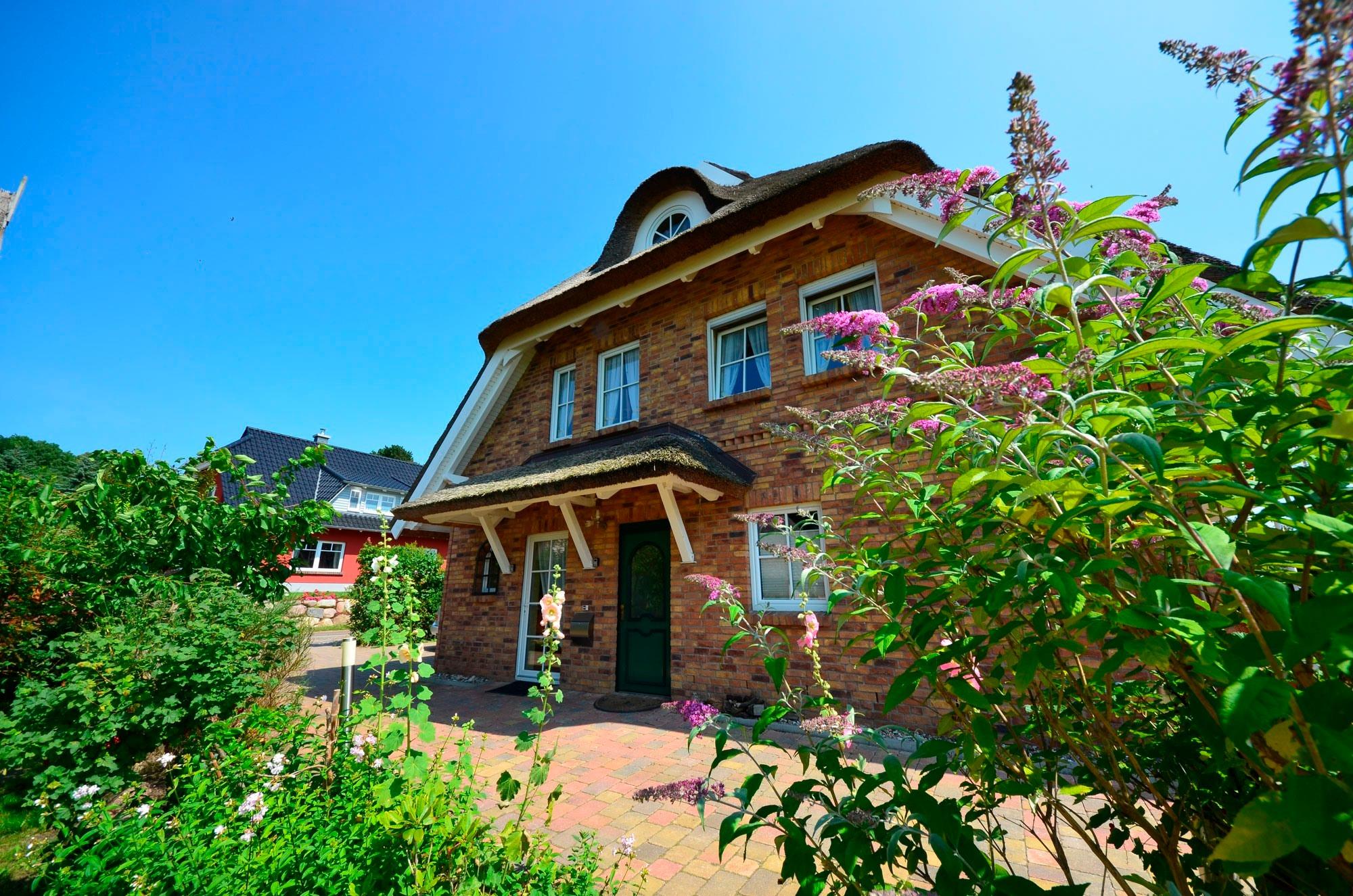 Die Reet-Dacheindeckung sowie die Sprossenfenster vermitteln eine gemütliche Atmosphäre und passen zum allgemeinen Charakter des Dorfes.
