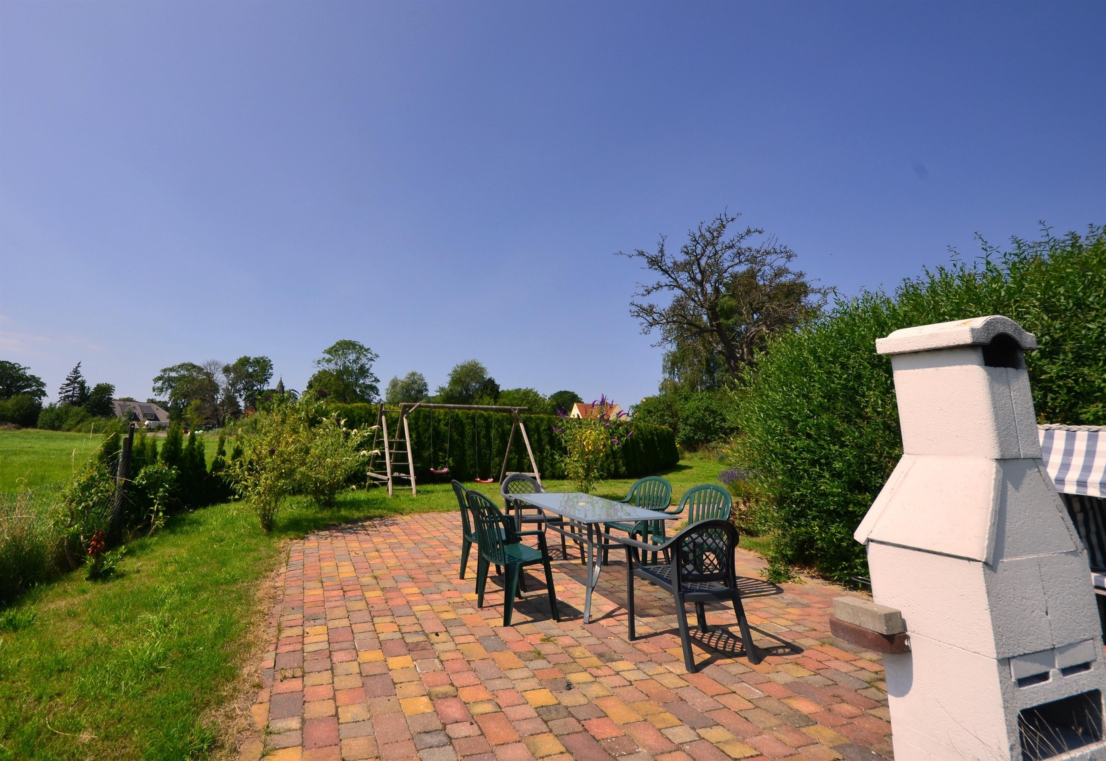 Separater Gartenteil mit Sitzplatz und Außengrill an den Wiesen, Kinderschaukel. Der Garten kann auch von der Wohnung im OG genutzt werden.