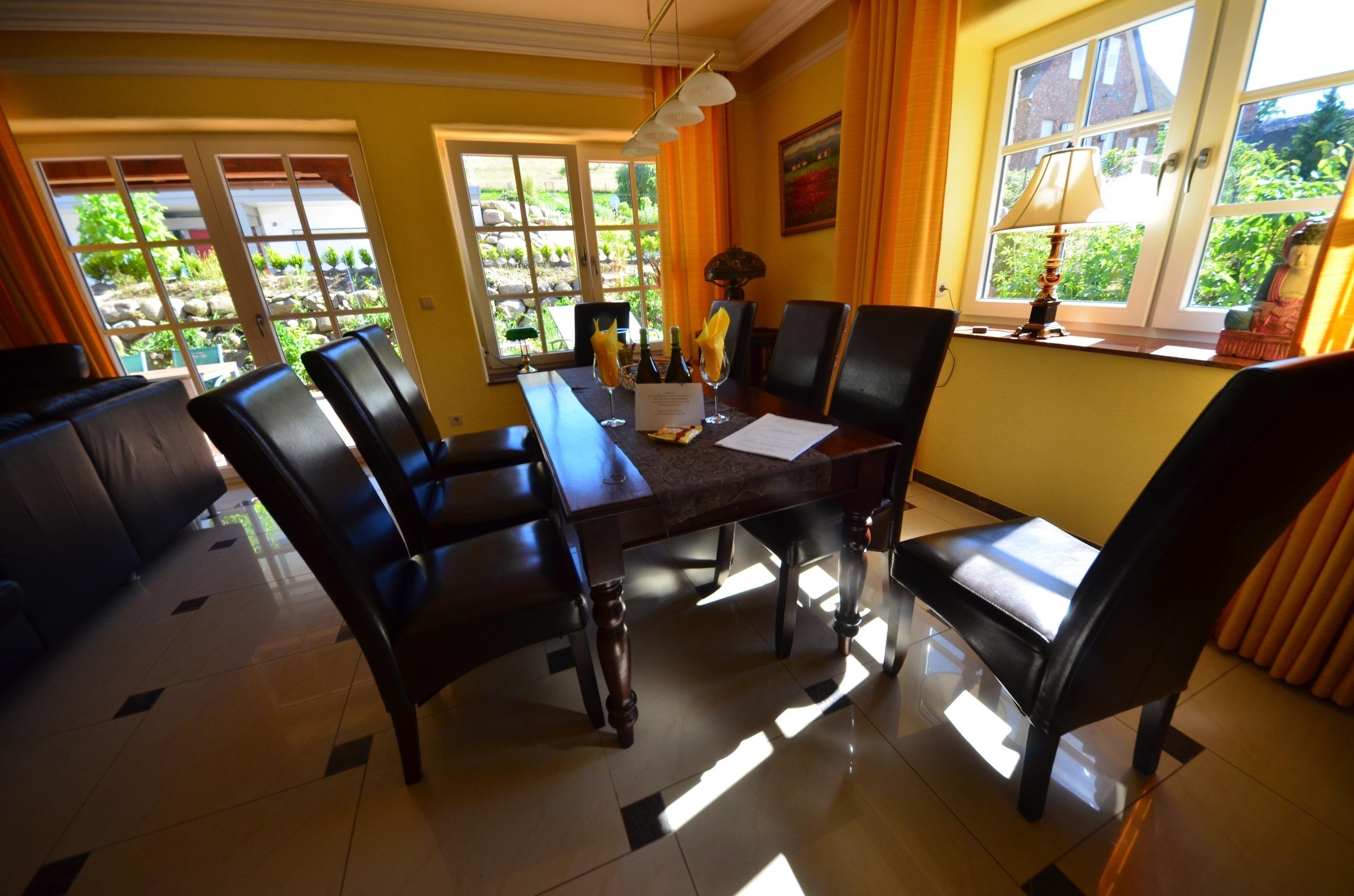 Das Ferienhaus ist bis zu 8 Personen u. Baby geeignet: Das Haus verfügt über 4 Doppelschlafzimmer, 4 Bäder und Sauna. Im OG teils mit elektrischen Rollläden, teils mit Velux-Verdunkelungsrollos.