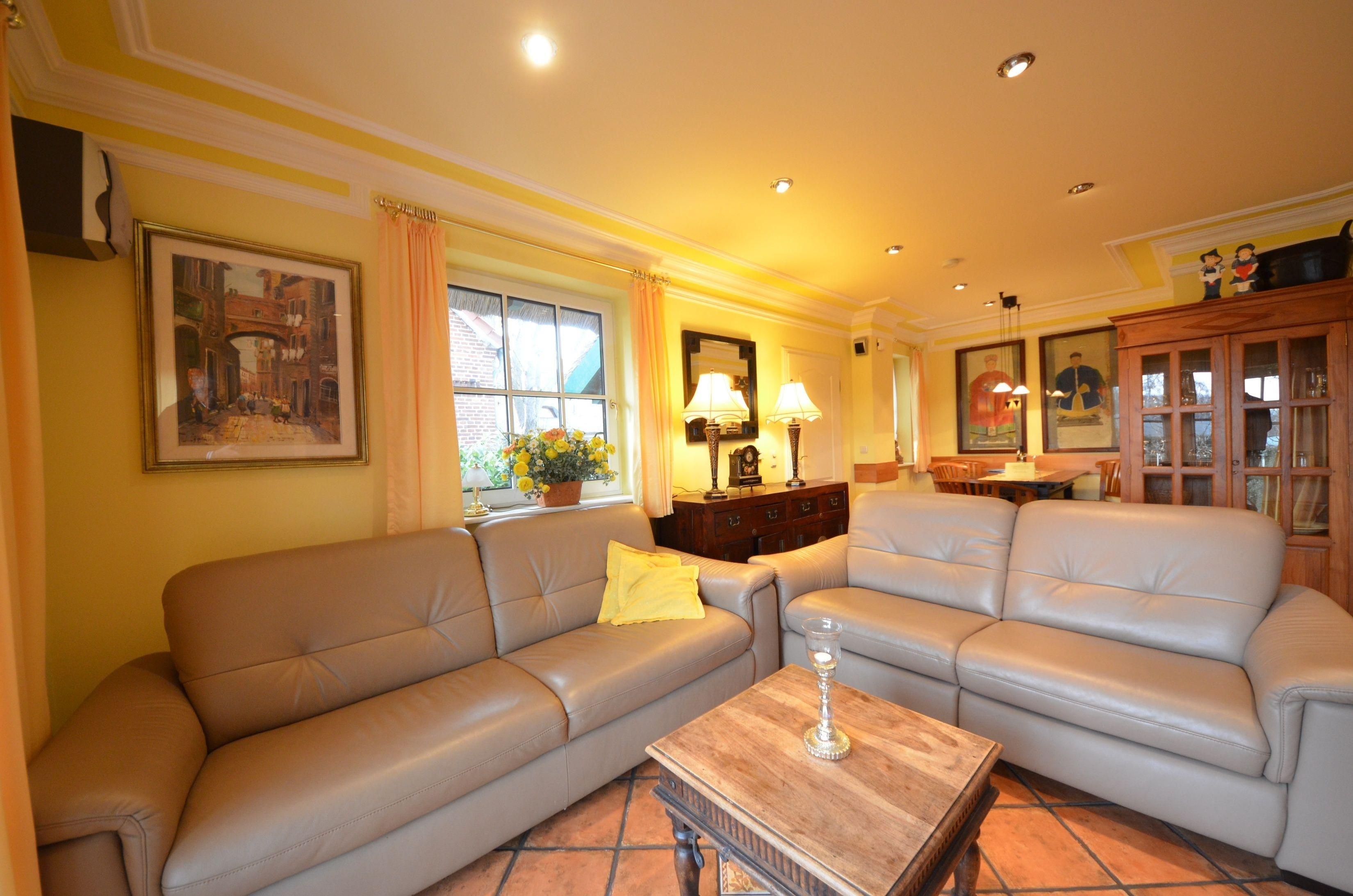 großzügiges Wohn- Esszimmer, schöne Couchgarnitur mit Opiumtisch,