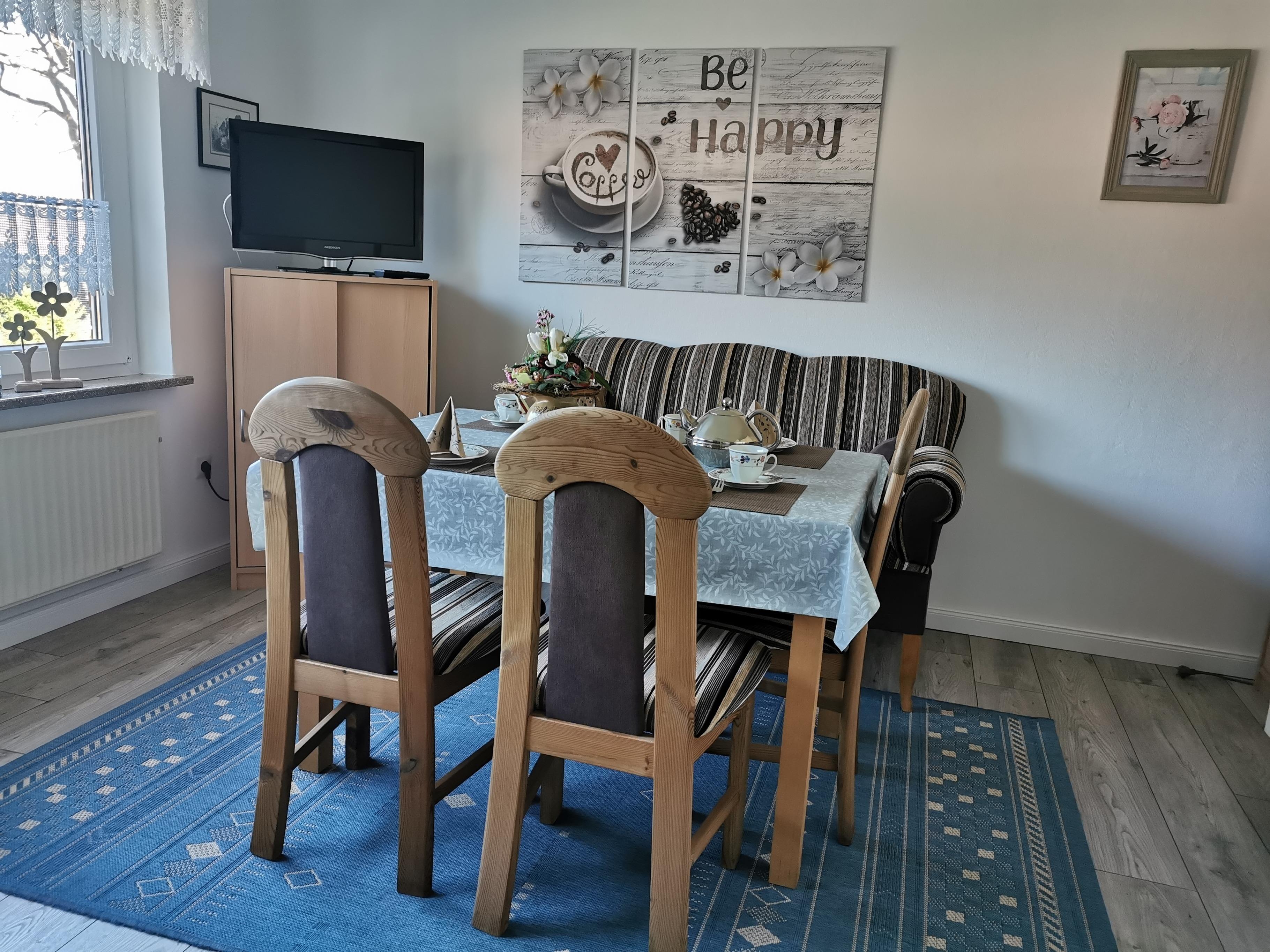 Die Nichtraucher-Ferienwohnung verfügt über einen eigenen Eingang und befindet sich im Obergeschoss des Hauses, der PKW-Stellplatz ist direkt am Haus.
