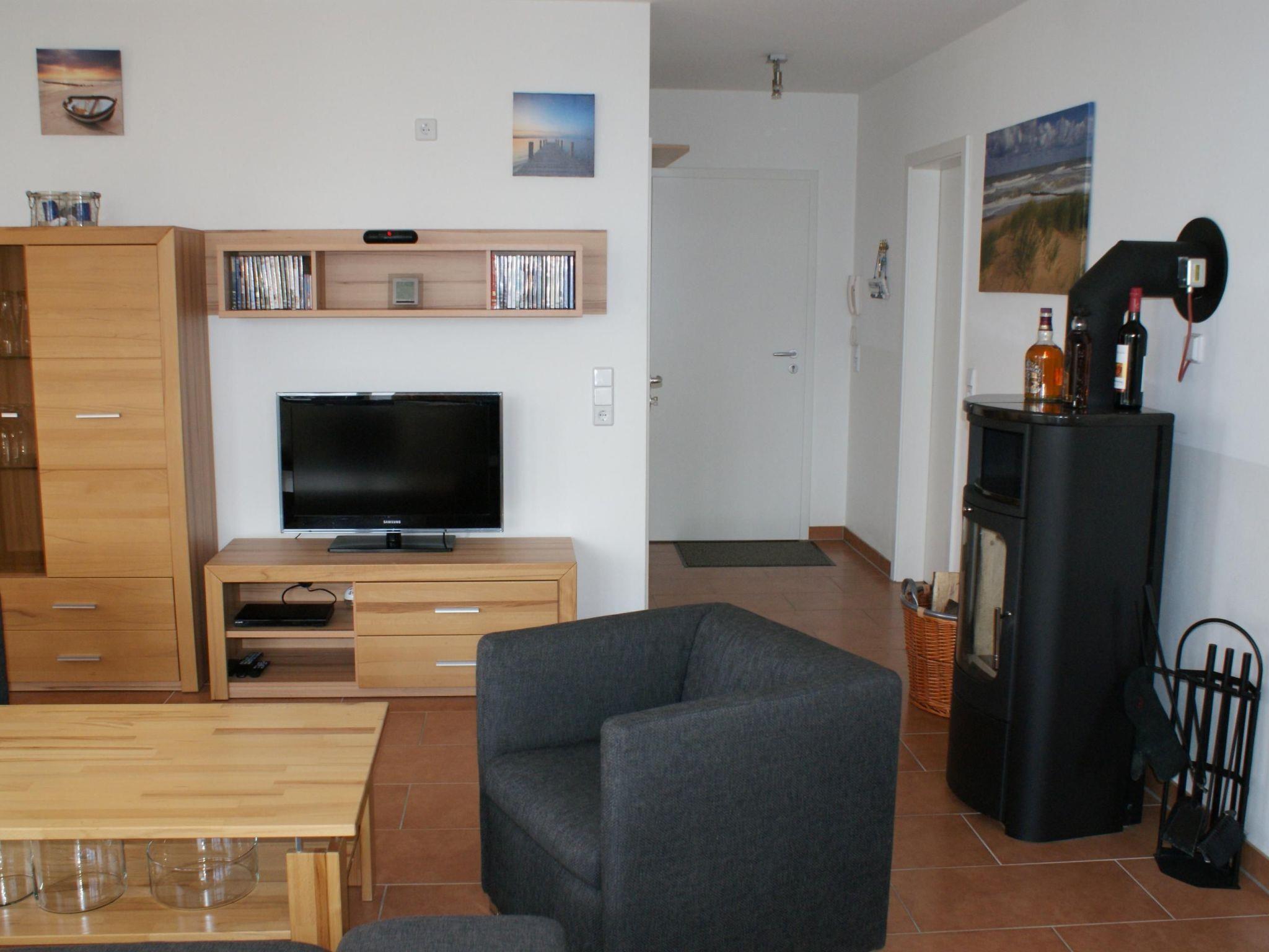 The apartment hasa spacious living room with a fully-equipped built-in kitchen. The day can start with a great breakfast in the cosy dining corner or on the adjoining balcony. The dinign corner has a dining table for four people and a highchair. In the evenings and in winter you can relax by the fireplace or in the cosy sitting corner with a TV and DVD player, music via the Beats Pill sound system and the stereo system, or with a good book. A collection of DVDs, books and board games are provided. The kitchen is equipped with a modern stove and oven, a dishwasher, a microwave, a Senseo coffee machine and another filter coffee machine, a toaster, a kettle and a big fridge with a freezer compartment. There is a generous wellness bath with its own sauna, a whirlpool for two people, a shower, WC, hairdryer and towel radiator, ensuring a relaxing holiday. The bedroom is furnished with a big double bed (180 x 200cm) and a very spacious built-in cupboard, two bedside tables and two reading lamps. It also has another flatscreen TV. The second room has twin beds (each 90 x 200cm) and a free cot on request, aswell as a little built-in wardrobe, a bedside table and a reading lamp. The apartment has some floor-to-ceiling windows, making it very light. Curtains ensure privacy. There is also a separate ground-level bicycle room, with space for four bicycles, a pram and beach toys, as well as watersports equipment. The Baltic Sea invites you to get away from it all at any time of year. The apartment is a highlight even in the cold season. You can enjoy a relaxing bath or sauna after a long walk along the beach. You can then cool off on the balcony with a view of the crackling fire in the fireplace.