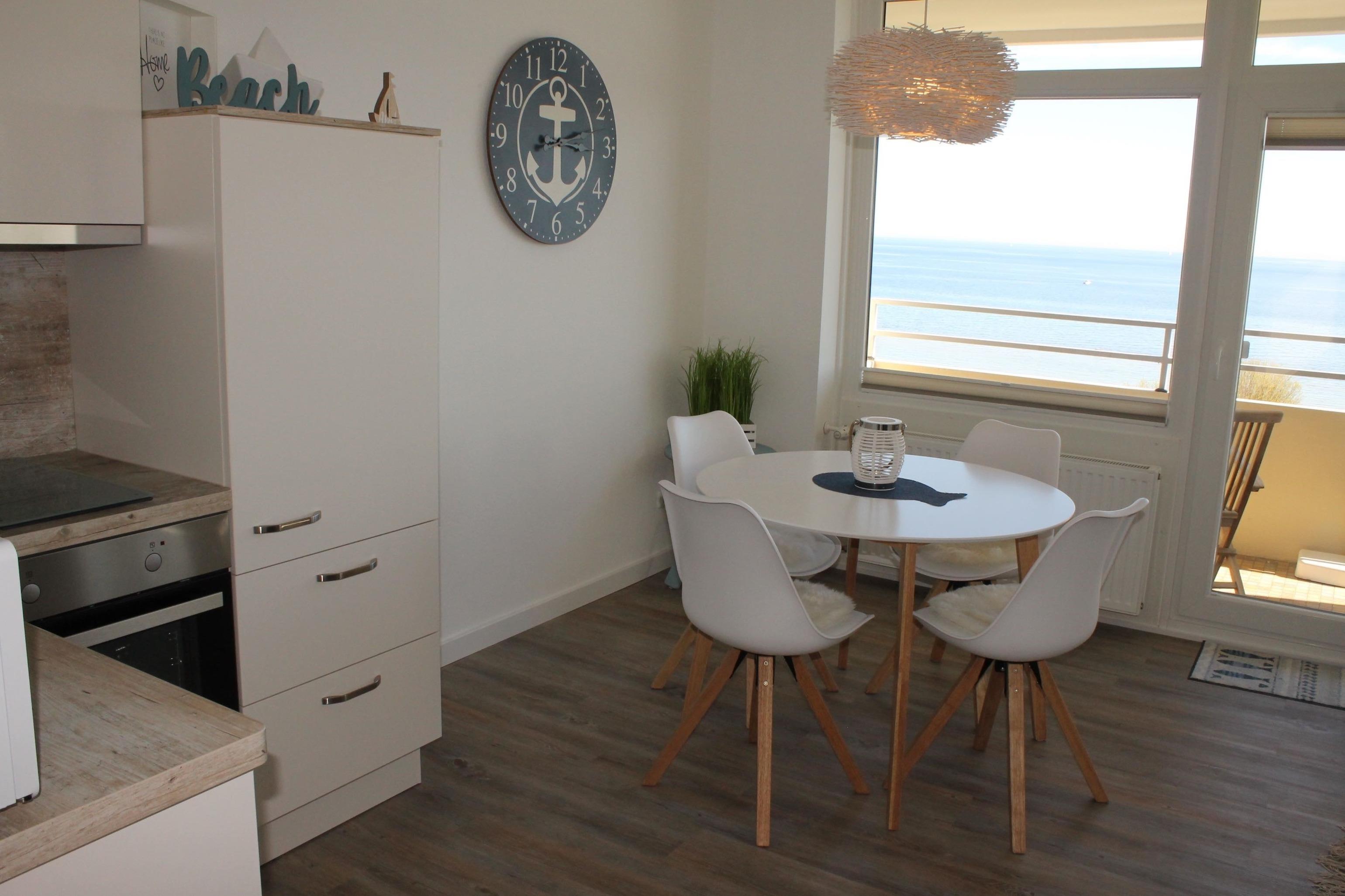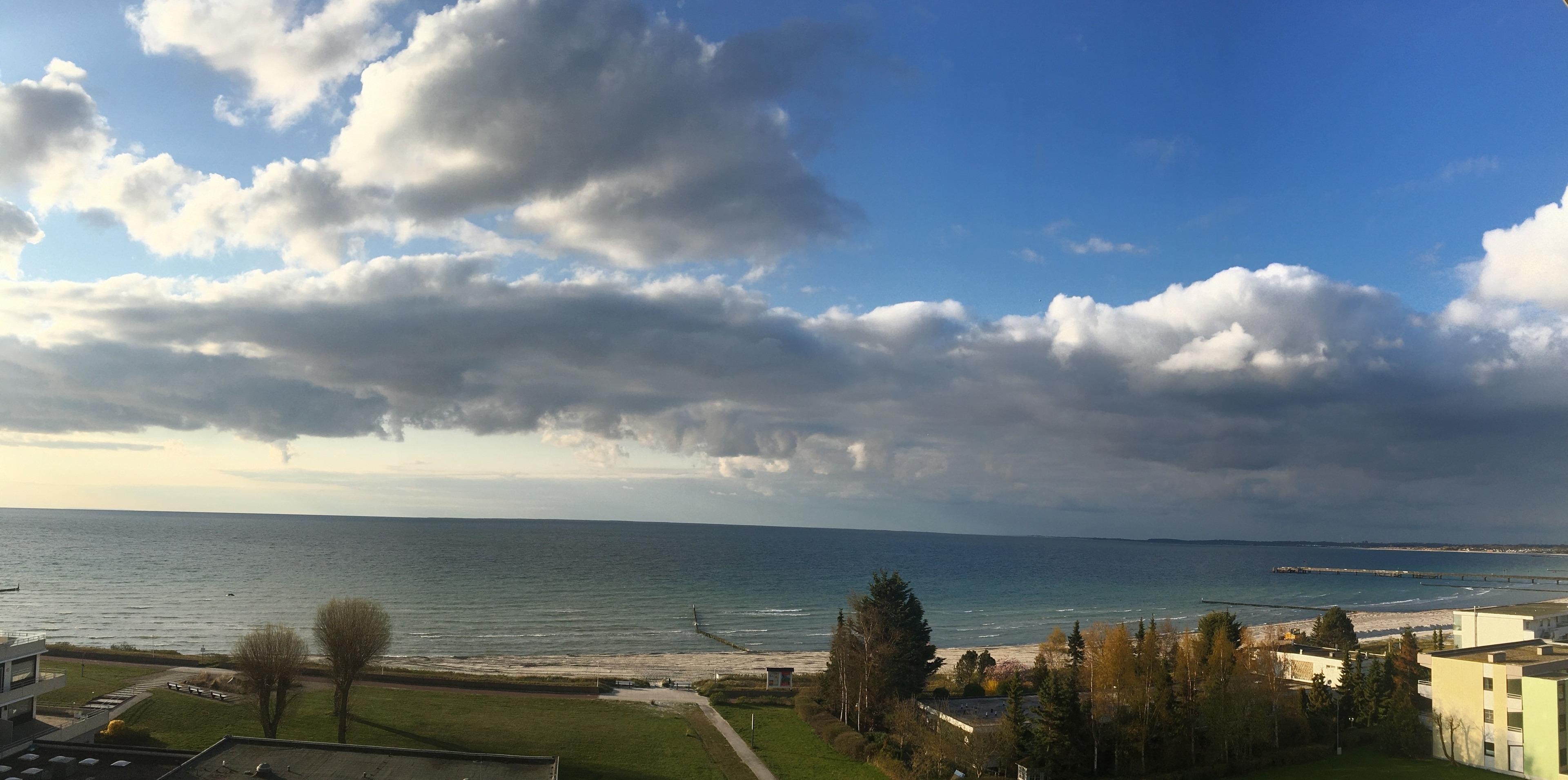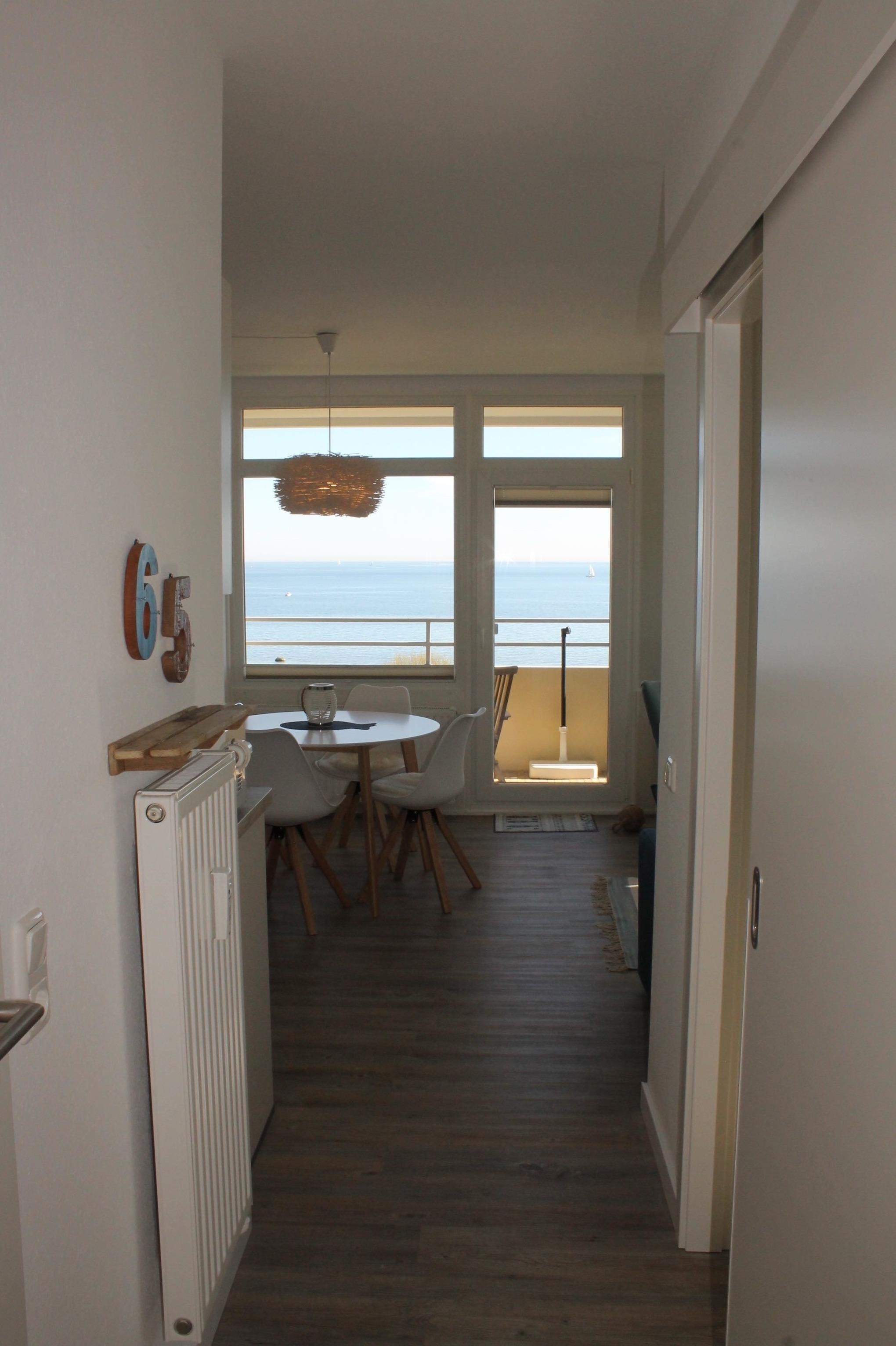 Schon beim Eintritt in die Wohnung können Sie den Blick auf die Ostsee genießen. Die Wohnung befindet sich in der 7. Etage und ist bequem mit dem Aufzug erreichbar.