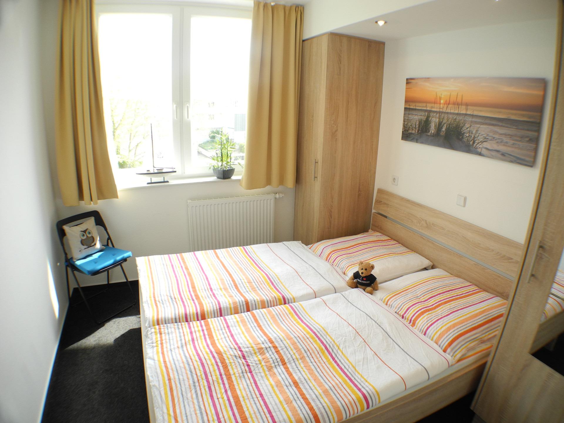In zwei komfortablen Schlafzimmern stehen Ihnen bequeme Doppelbetten zur Verfügung, die Sie einladen, die wunderbare Welt der Träume für sich zu entdecken. Zusätzlich befindet sich in einem der beiden Zimmer ein Fernseher mit integriertem DVD-Player.